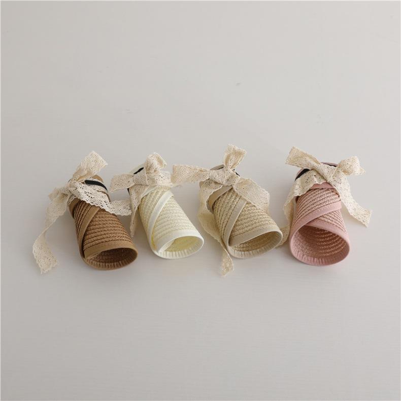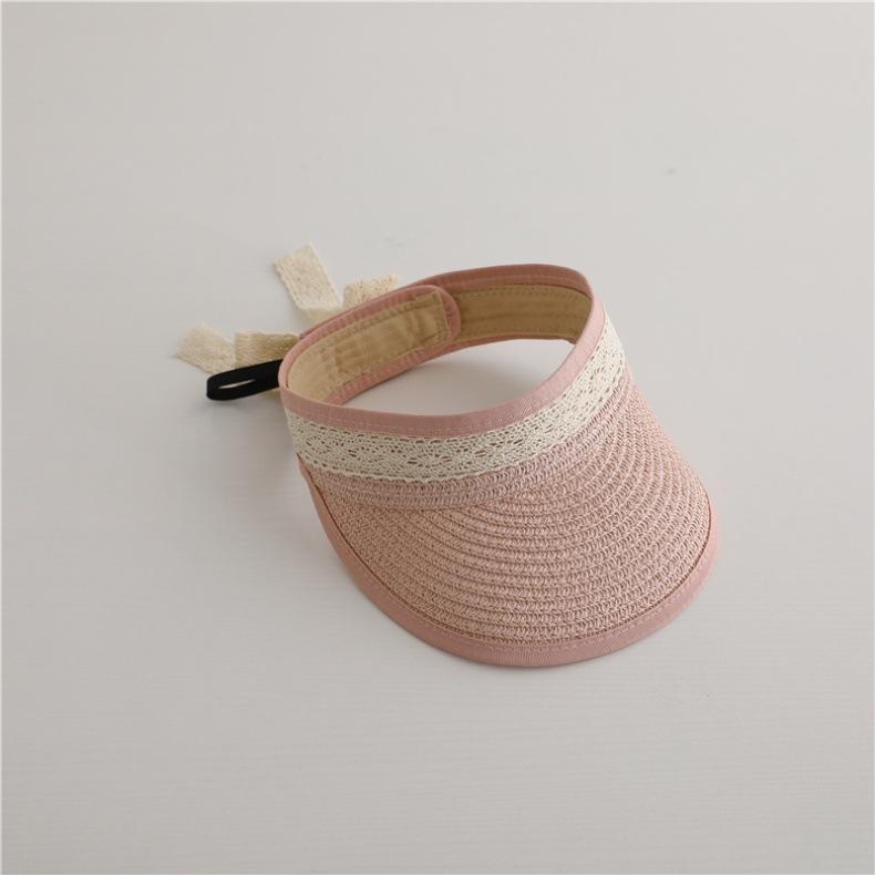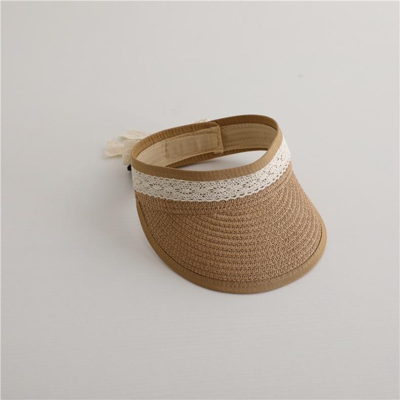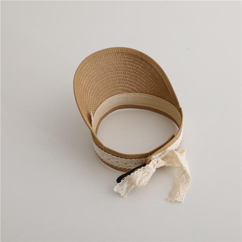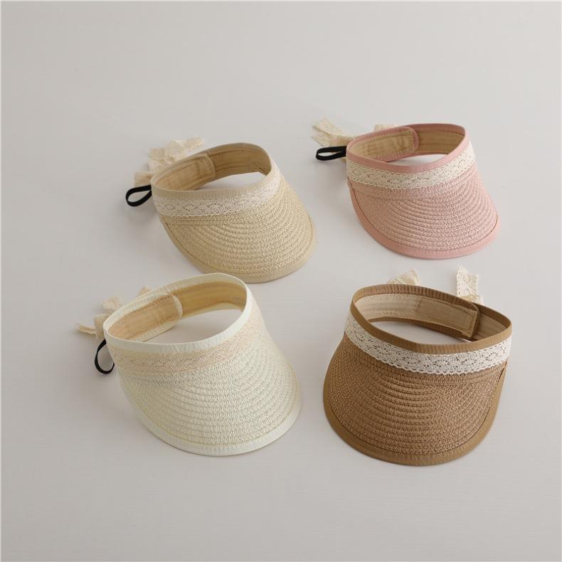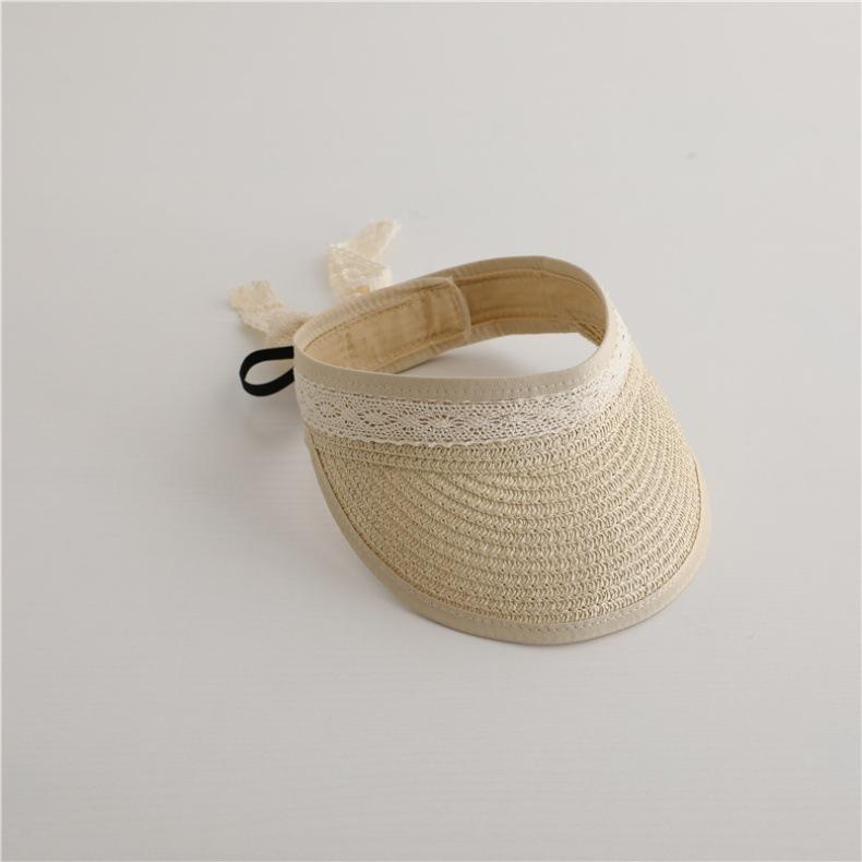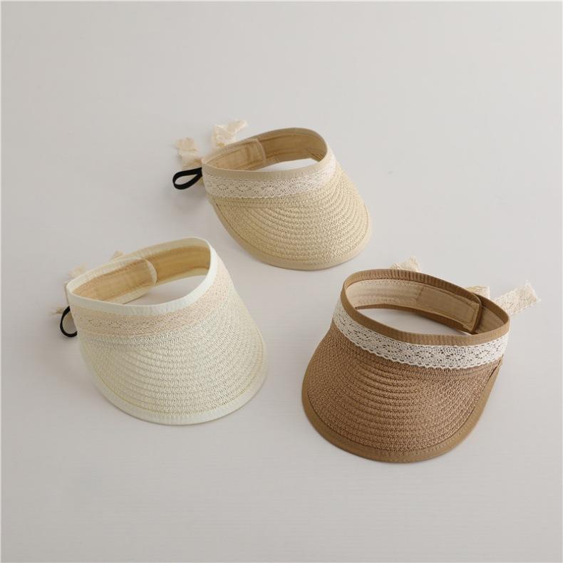 Sombrero de paja de estilo coreano para niña, con parte superior vacía y correa de encaje, protector solar de verano, sombrero fresco para niños, sombrilla de viaje, sombrero para el sol para bebé.