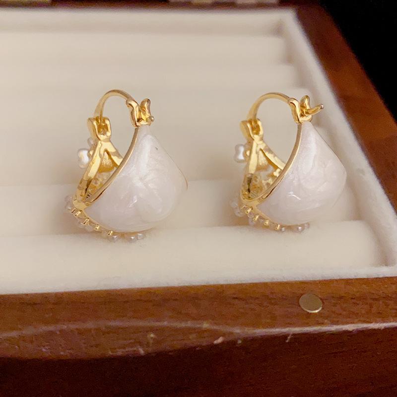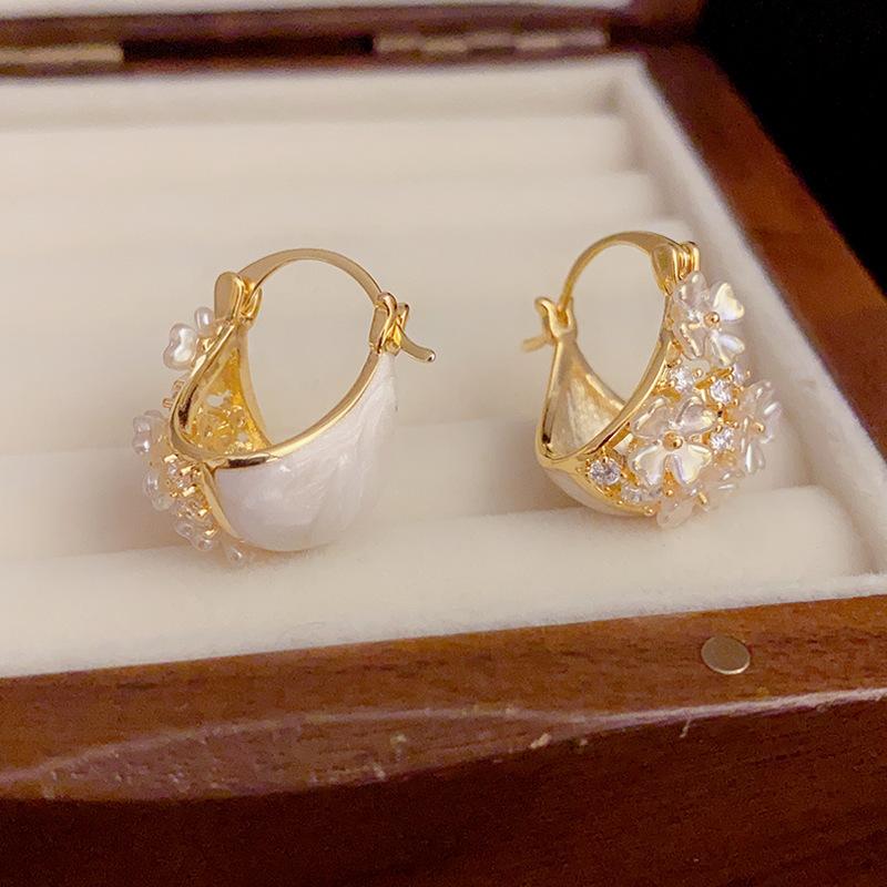 Pendientes coreanos ligeros de lujo, elegantes, de doble cara, con diseño de concha y flor, con hebilla para las orejas, exquisitos y de alta gama, que combinan con todo.