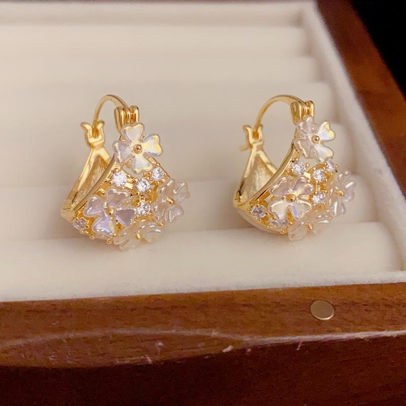 Compra Pendientes coreanos ligeros de lujo, elegantes, de doble cara, con diseño de concha y flor, con hebilla para las orejas, exquisitos y de alta gama, que combinan con todo. al por mayor en Joom.pro