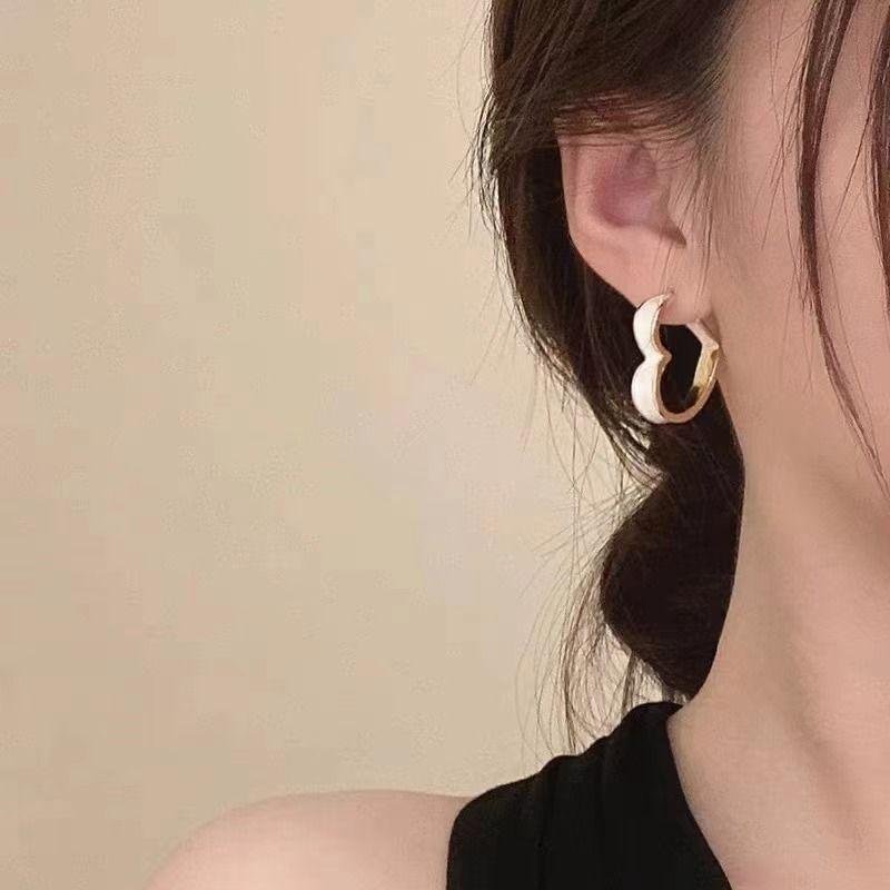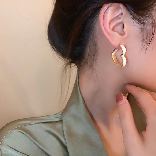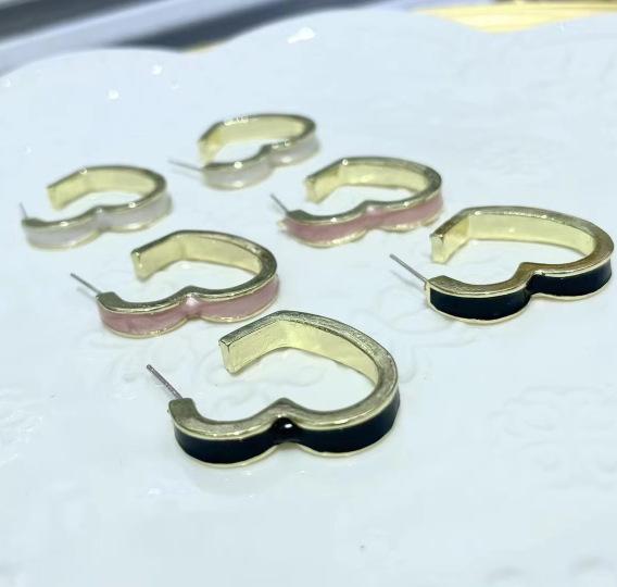 Aretes de Corazón de Gota de Aceite Tricolor de Moda Aretes Simples Dulces Abstractos Temperamento Nicho Geométrico Aretes de Lujo Ligero