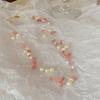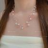 Collar de doble capa con grava irregular rosa, moderno y dulce gargantilla de cadena de clavícula, cadena de cuello con cuentas de perlas de lujo