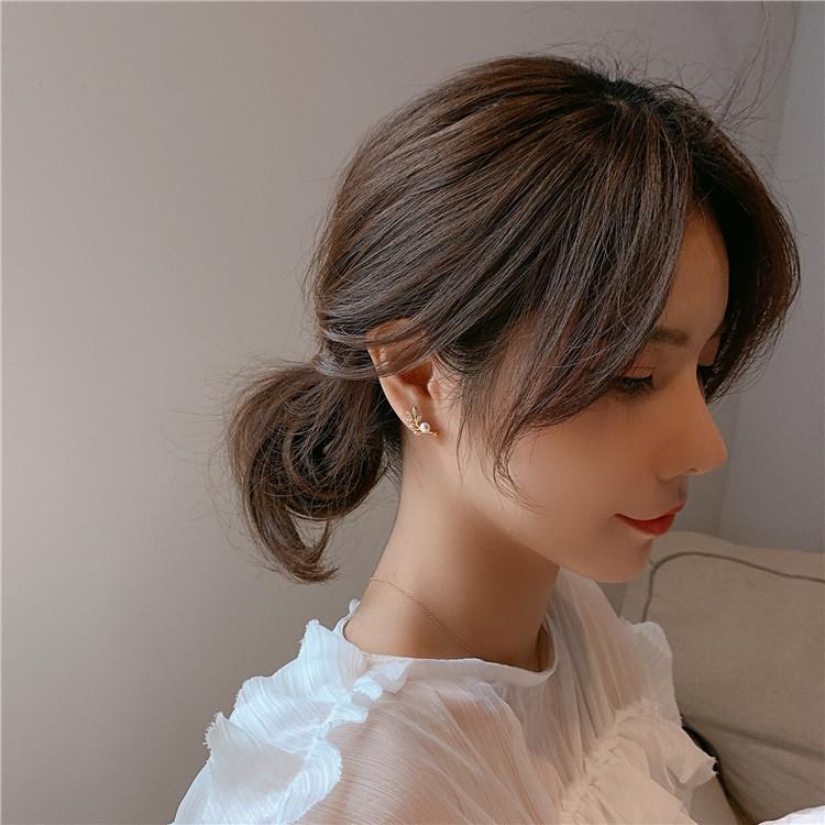 Pendientes coreanos de plata S925 con diseño de aguja y perla, a la moda, combinables, pequeños, sencillos y elegantes para mujer.