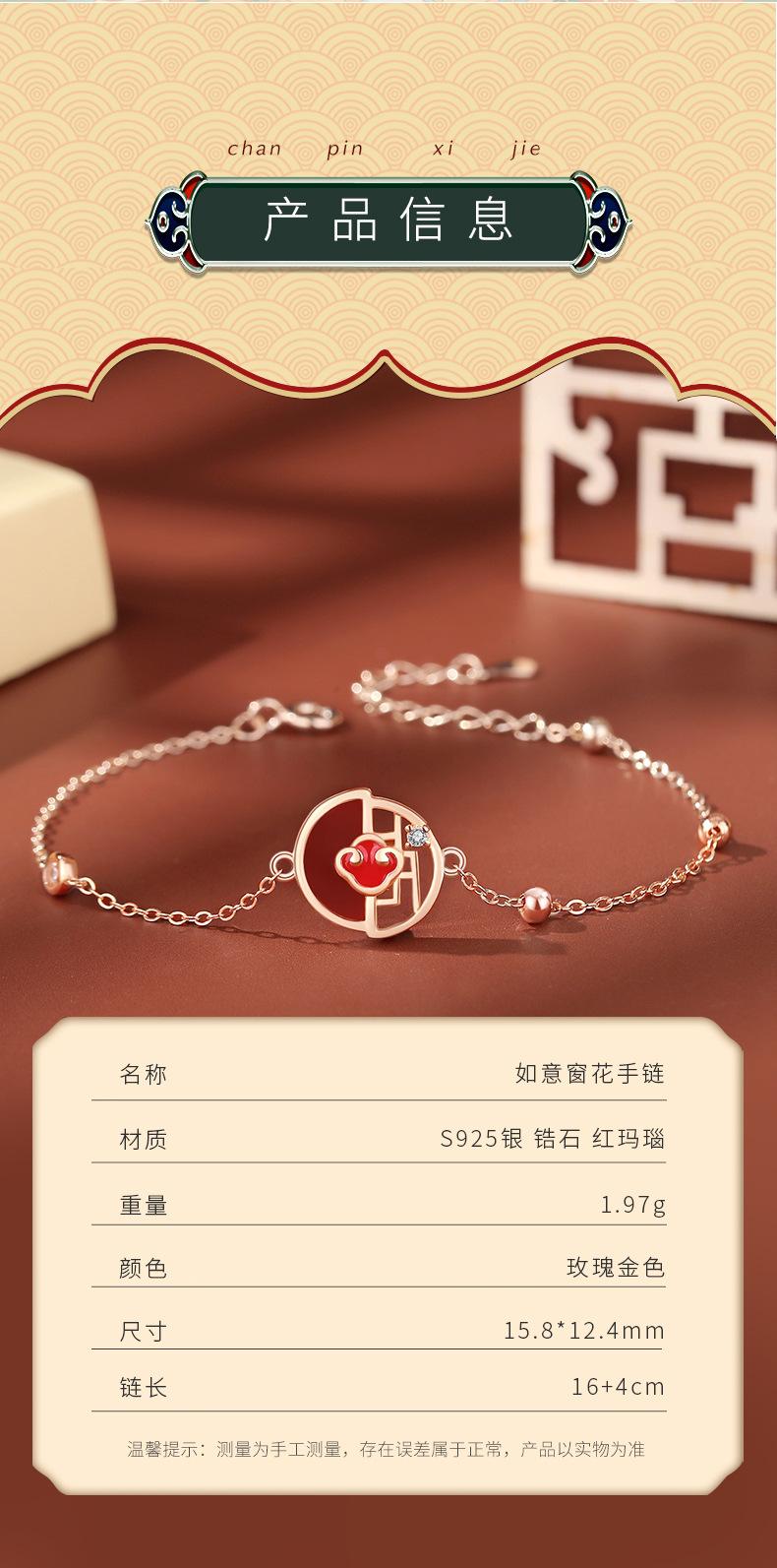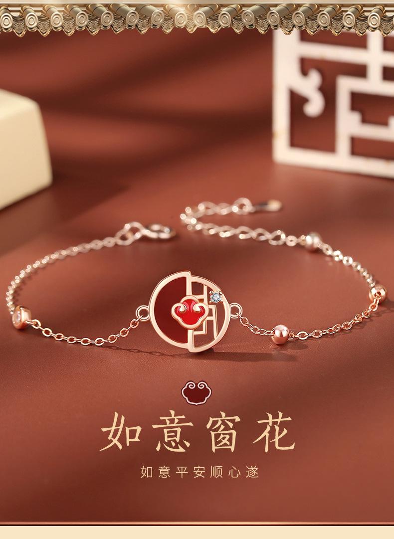 Compra Pulsera original Ruyi Lock para mujer, de plata de ley 925, estilo vintage nacional, con ágata de oro rosa, joyería de Año Nuevo de estilo chino. al por mayor en Joom.pro