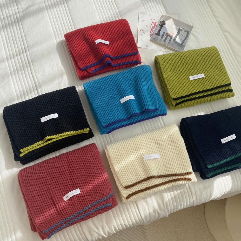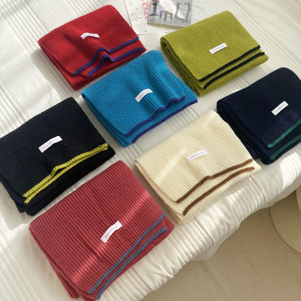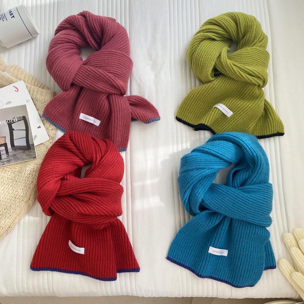 2025 Invierno Nuevo Color Sólido Blanqueador Bufanda Tejida Estilo Coreano Ins Versátil Bloque de Color Estudiante Calentador de Cuello Cálido