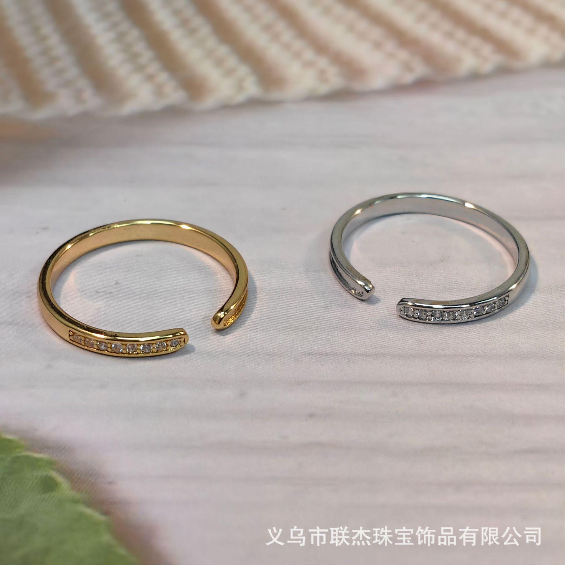 Compra Anillo de estilo coreano simple con medio diamante chapado en oro real para mujer, elegante diseño de nicho, anillo de dedo de alta calidad, exquisito anillo de dedo que combina con todo. al por mayor en Joom.pro