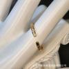 Anillo de estilo coreano simple con medio diamante chapado en oro real para mujer, elegante diseño de nicho, anillo de dedo de alta calidad, exquisito anillo de dedo que combina con todo.