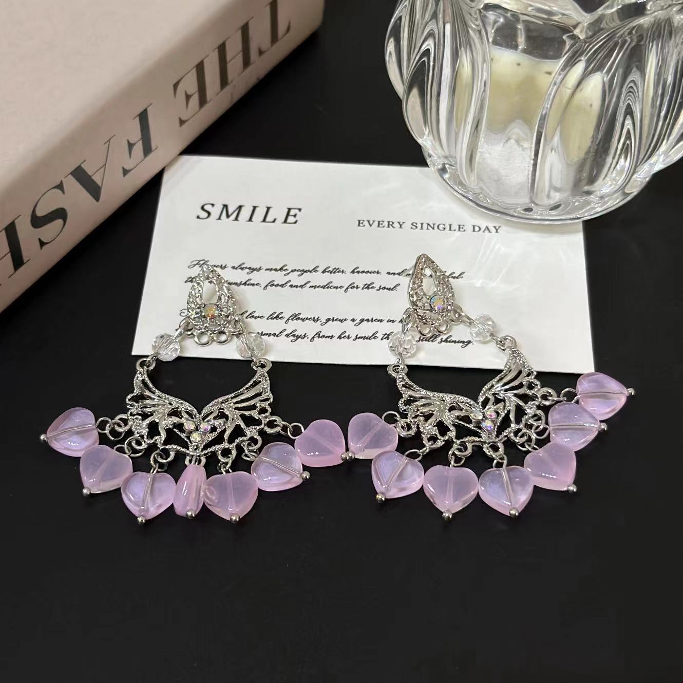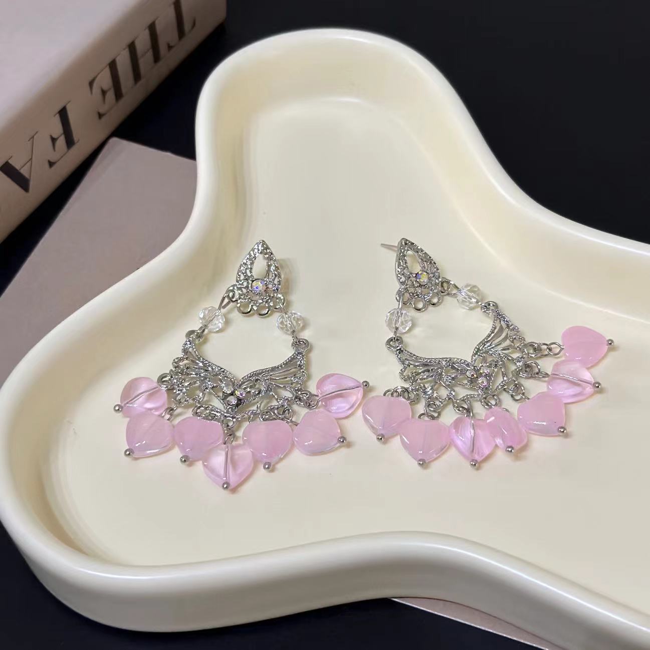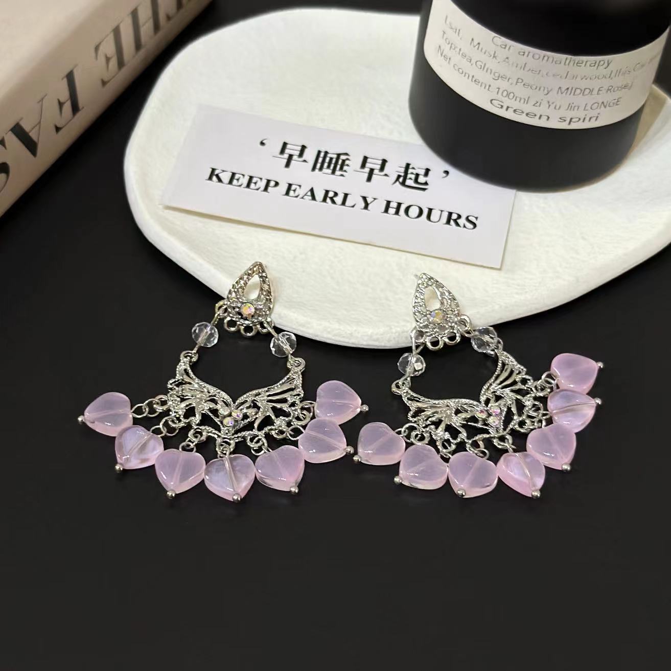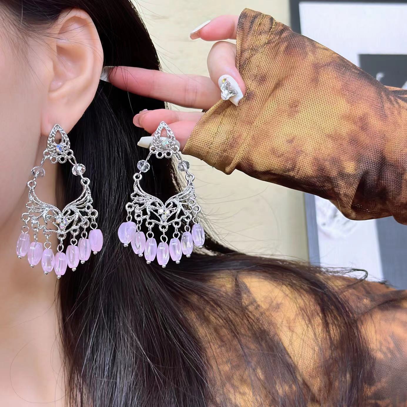 Compra Pendientes de borlas con cuentas de cristal rosa de estilo francés para mujer, de lujo, ligeros y exagerados, con diseño de nicho de alta gama. al por mayor en Joom.pro