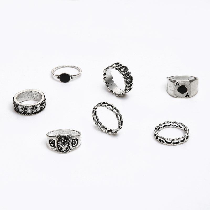 Compra Conjunto de 7 anillos de amor de melocotón negro vintage oscuro con atmósfera sencilla y joyería de moda de venta transfronteriza al por mayor en Joom.pro