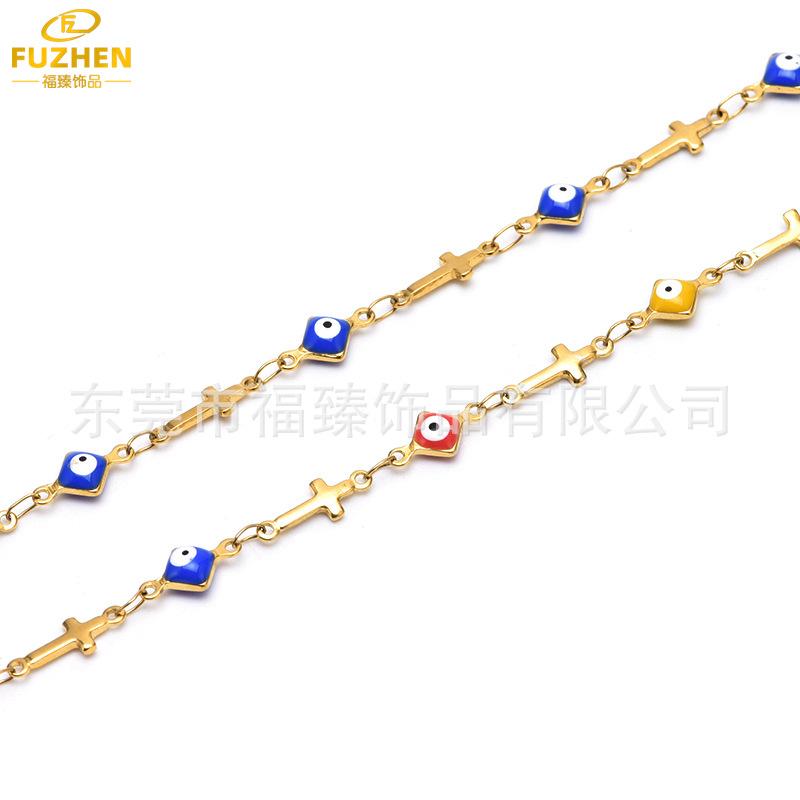 Nueva cadena de ojo de acero inoxidable transfronteriza cadena hecha a mano con goteo de aceite cadena bohemia collar de ojo turco