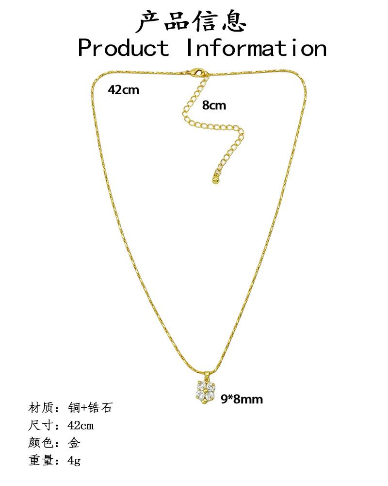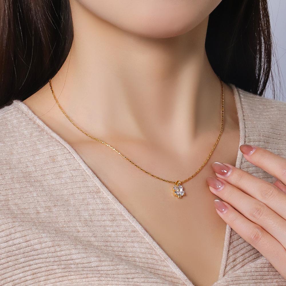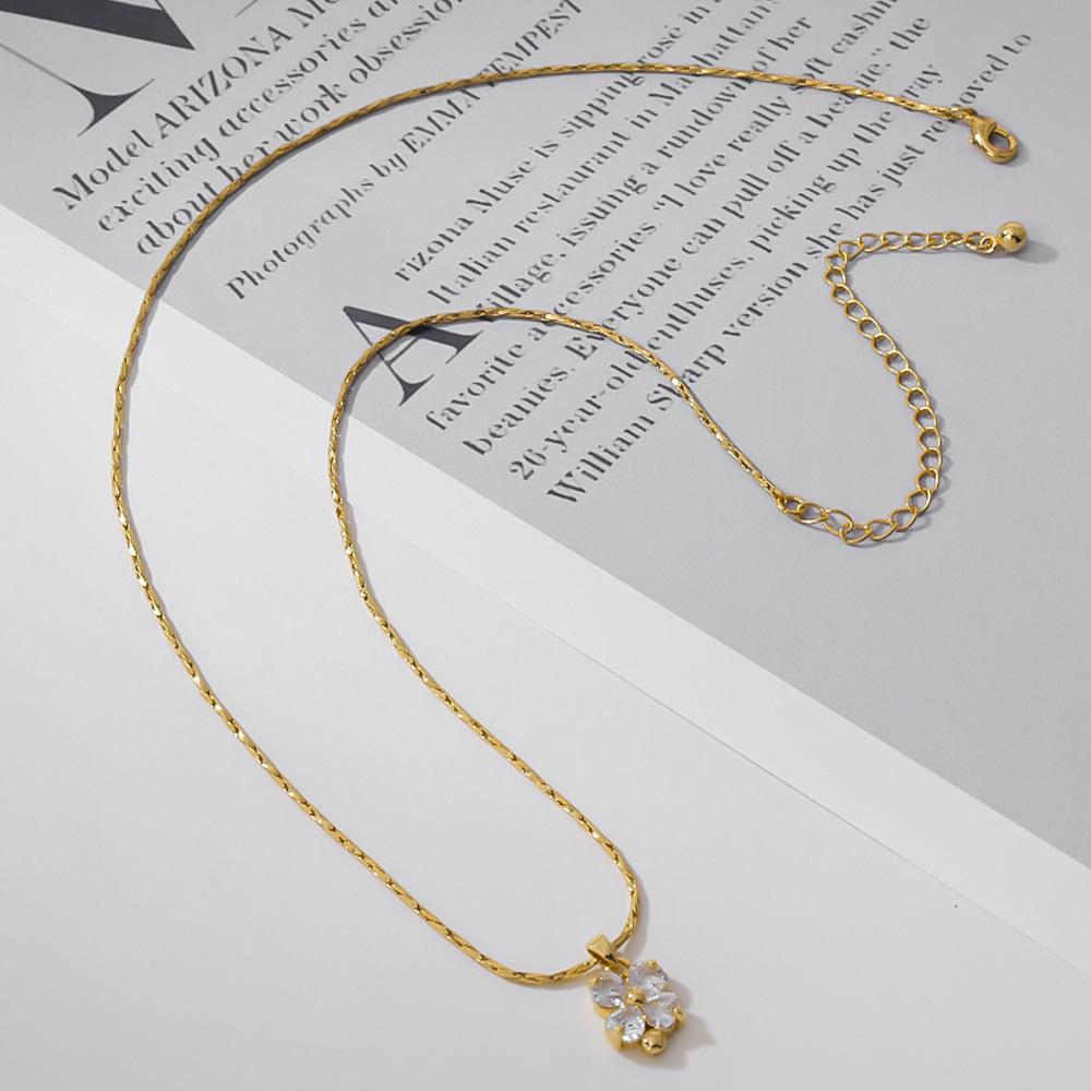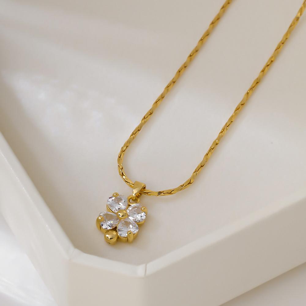 Collar con colgante de flor de trébol de cuatro hojas transfronterizo para mujer, moderno y versátil, incrustado con circonitas, cadena para clavícula, joyería de lujo ligero, cadena corta