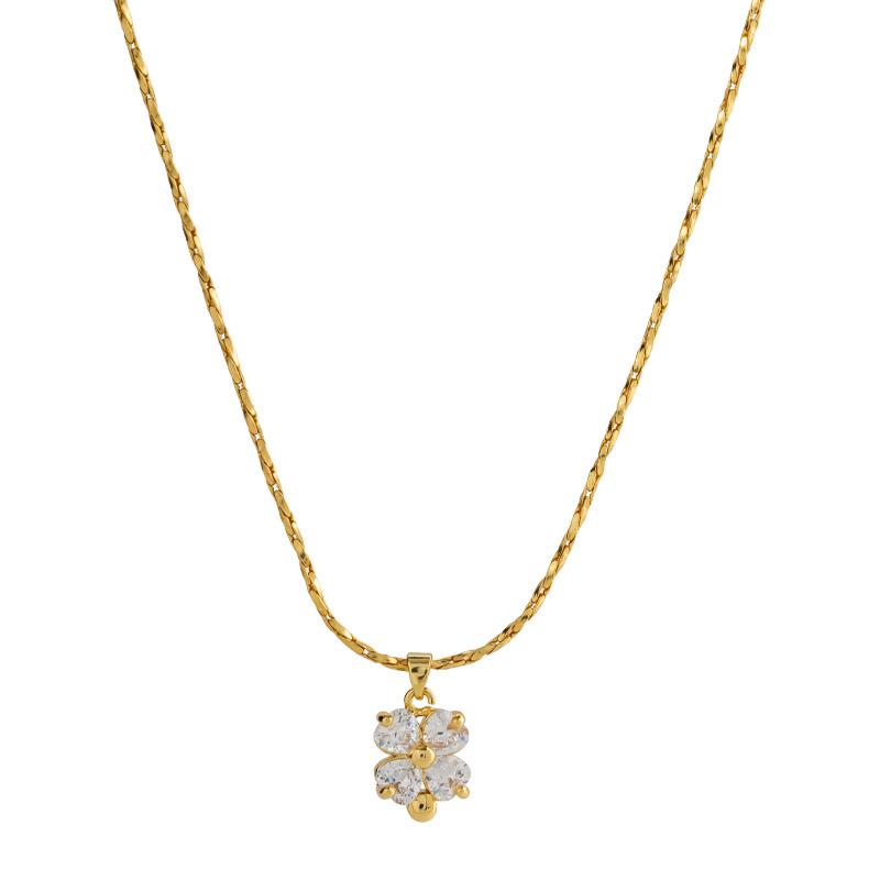 Four-Leaf Clover copper inlaid zirconium pendant necklace