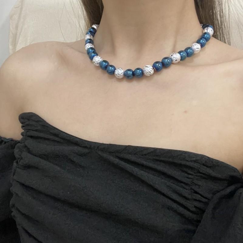 Cadena de clavícula de perla azul oscuro exquisita y de lujo ligero para mujer, nuevo collar de nicho de temperamento moderno de alta calidad, accesorios