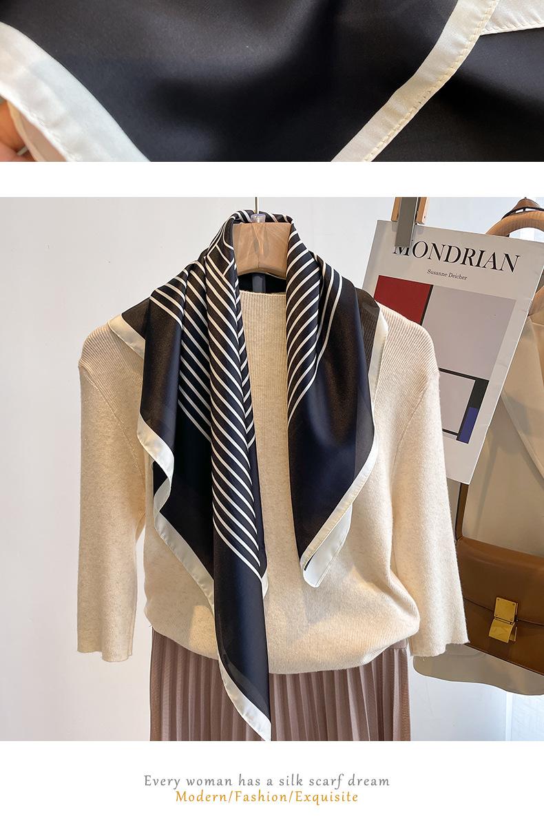Bufanda de rayas blancas y negras, pequeña bufanda cuadrada para mujer, bufanda decorativa profesional de primavera y otoño y verano, bufanda fina de 70 x 70