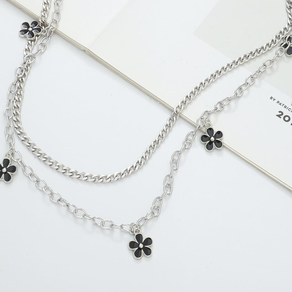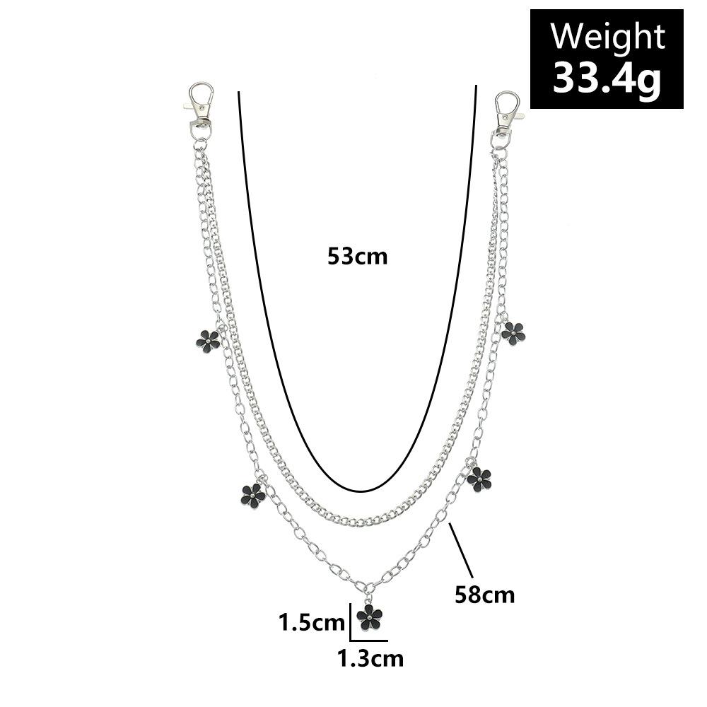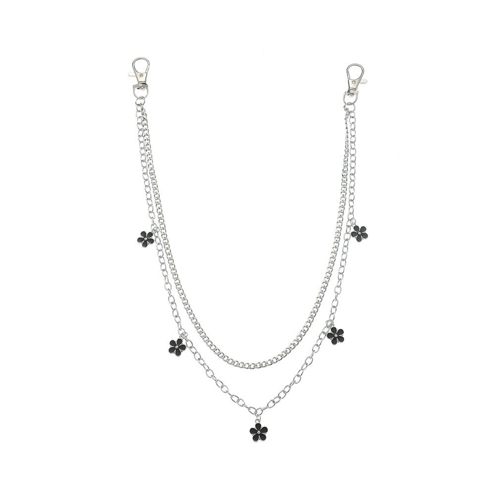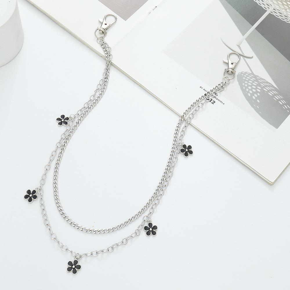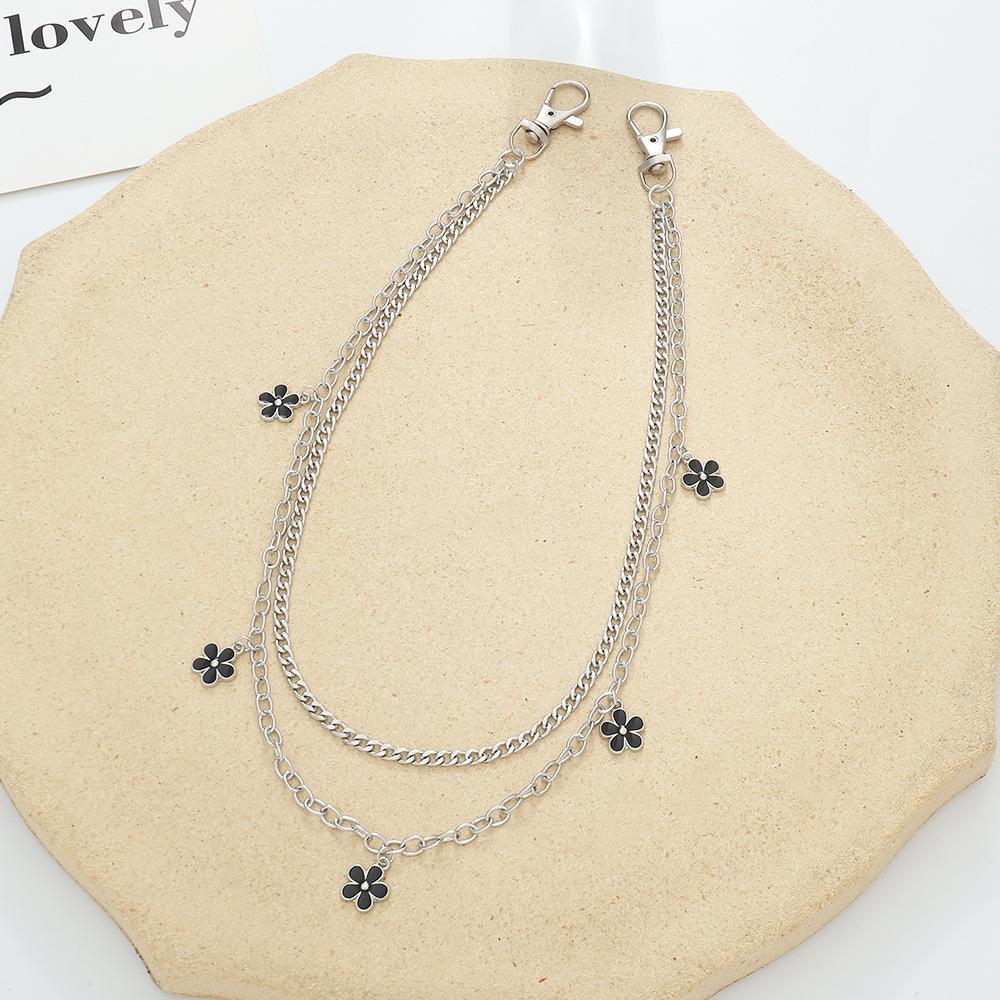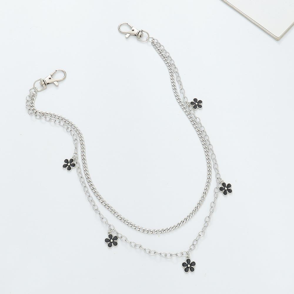 Cadena de cintura sexy unisex europea y americana transfronteriza, cadena para pantalones estilo hip hop punk, cadena para cintura con colgante de flor negra.