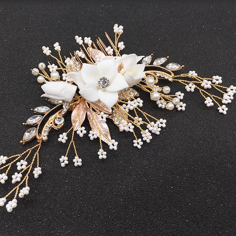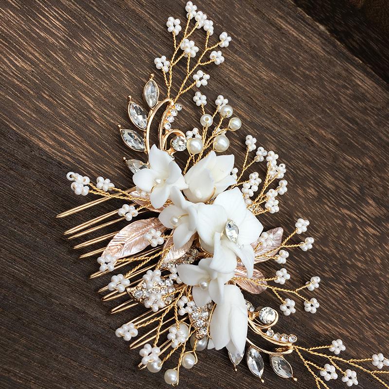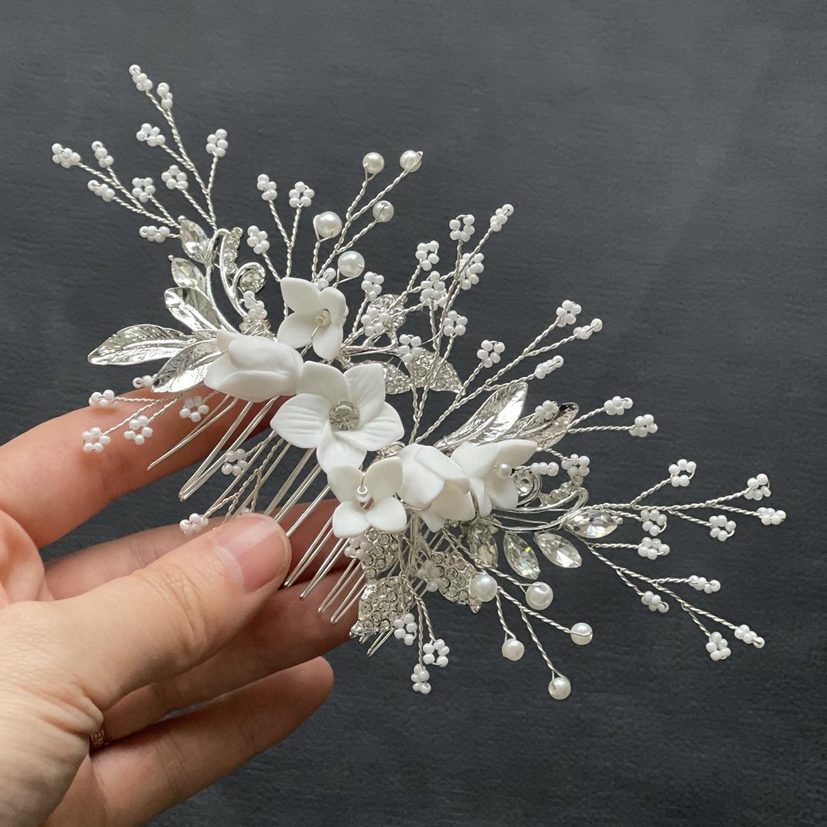 Tocado de novia, vestido de novia, peineta de flores blancas, nuevos accesorios de boda 2020