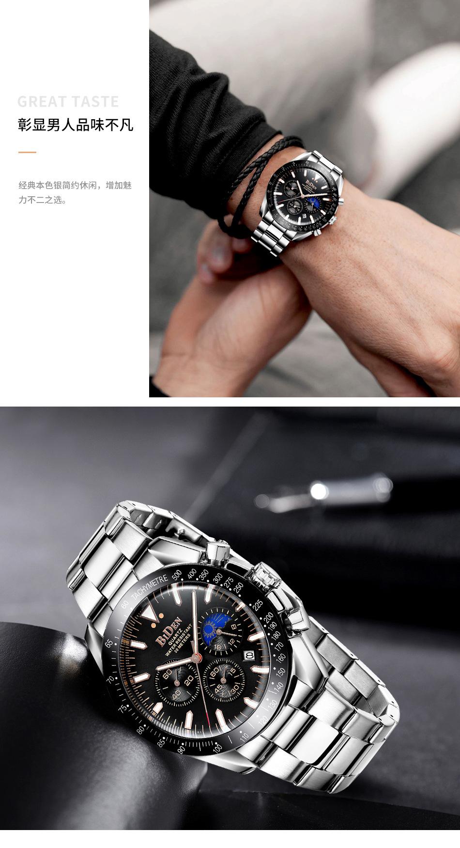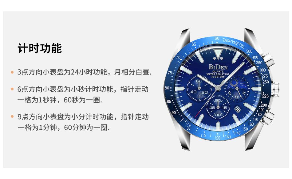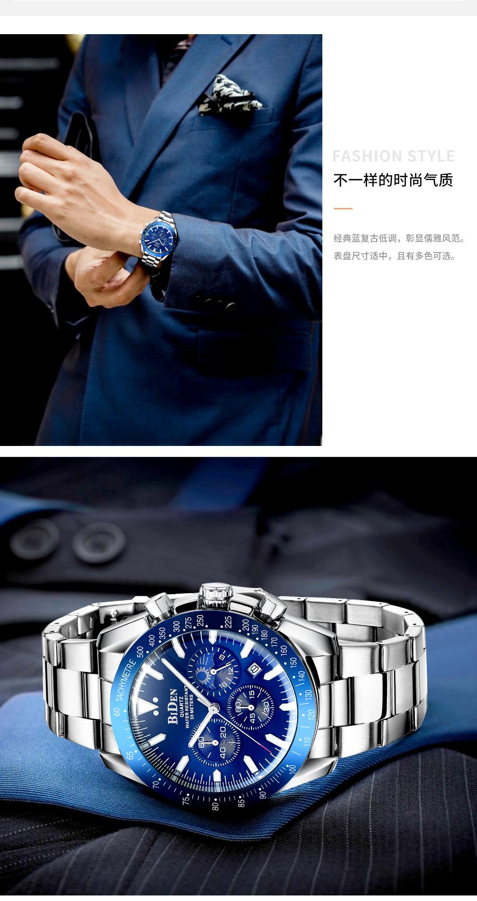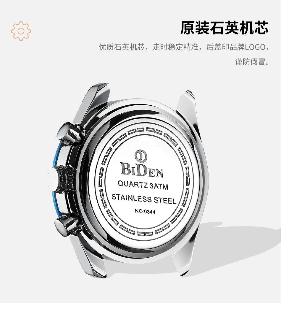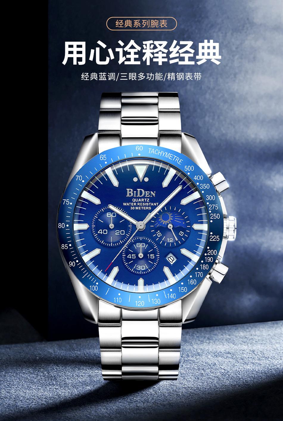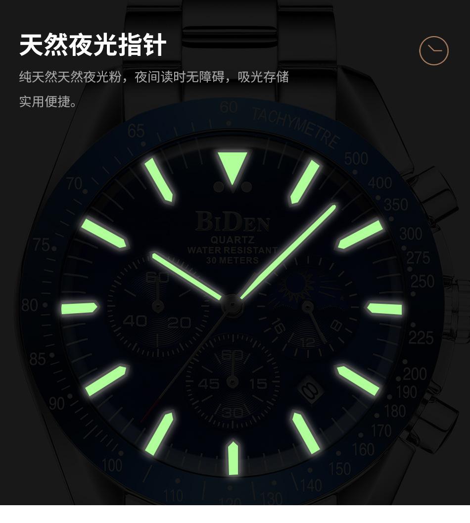 Reloj de cuarzo de negocios BIDEN correa de acero inoxidable para hombre cronógrafo multifunción de seis agujas reloj luminoso de moda