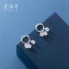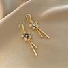 Pendientes de plata s925 con diseño retro de flores negras y costuras metálicas, estilo coreano, sencillos y de moda para mujer.
