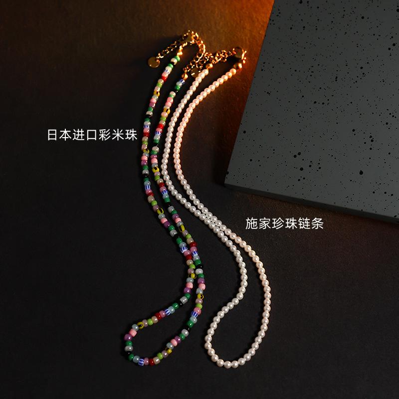 Material: Cobre + Galvanoplastia conservadora de color oro 18K en el horno + Cadena de perlas Shijia / Cadena de cuentas de arroz de color japonés