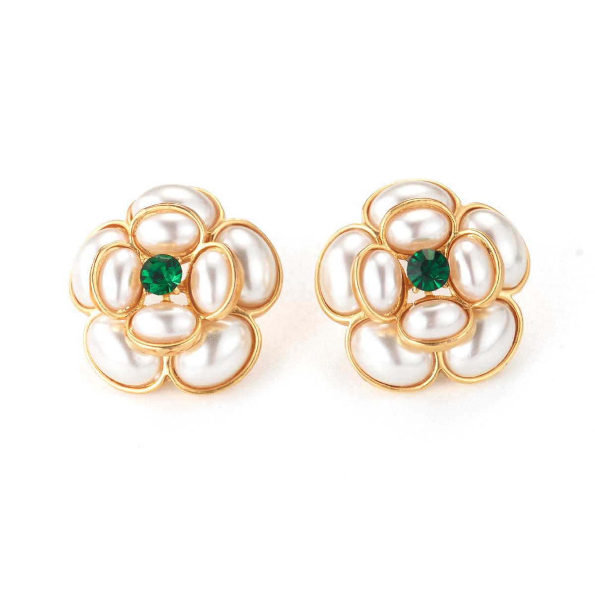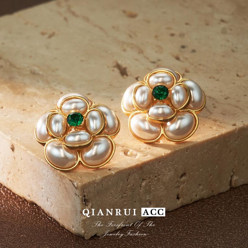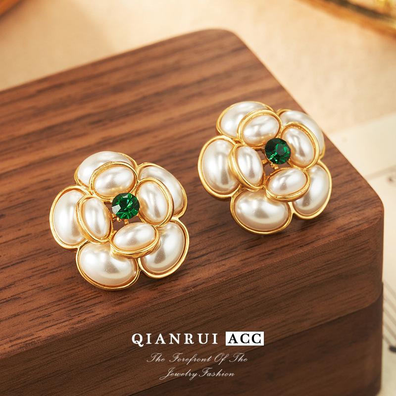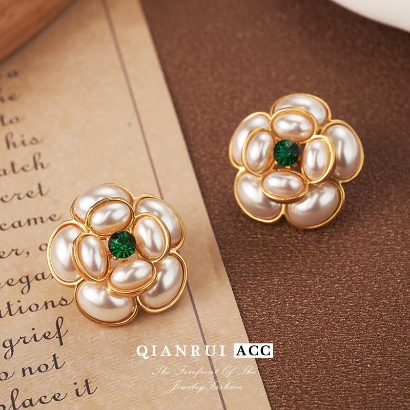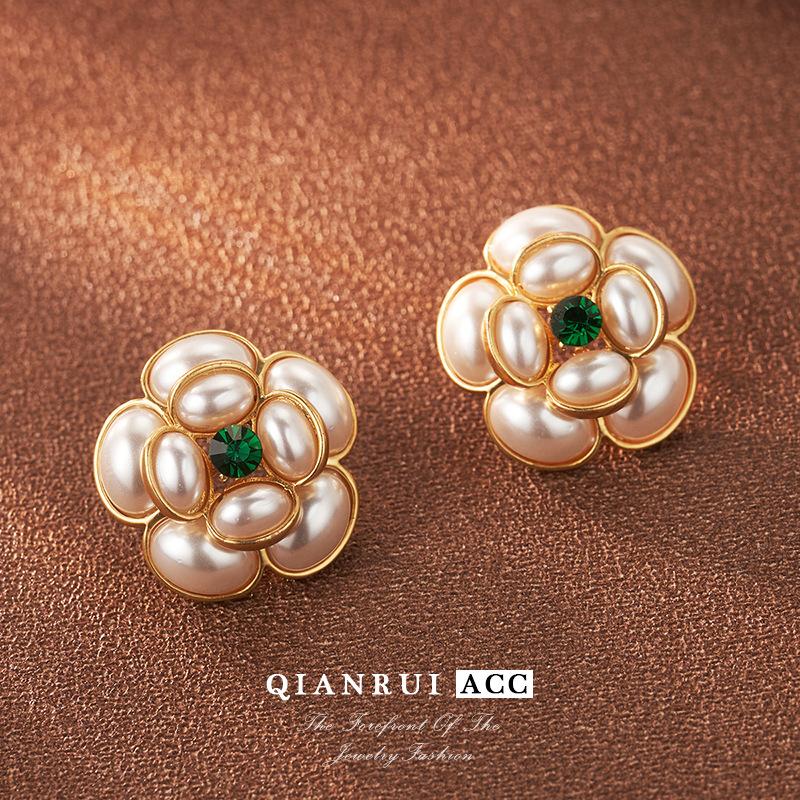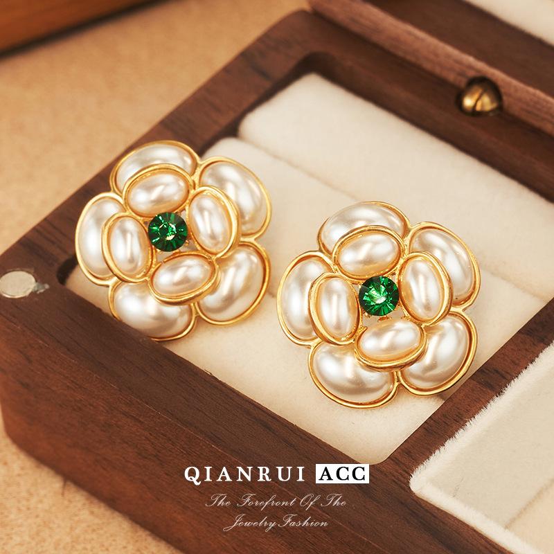 Pendientes medievales vintage, accesorios de joyería personalizados, pendientes de camelia con incrustaciones, estilo pequeño, de alta moda, de lujo, ligeros y franceses