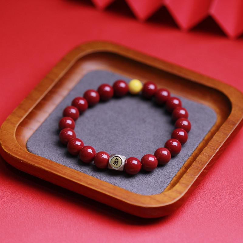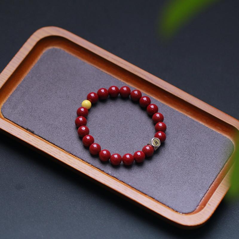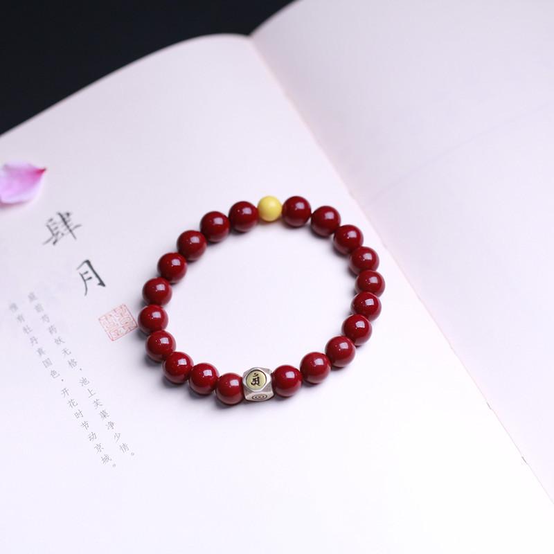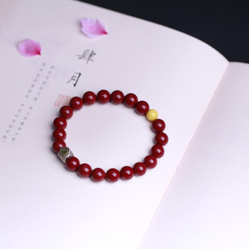 Pulsera de cinabrio con cuentas redondas de cera de abejas de la patrona de plata s925, accesorios de moda sencillos para hombres y mujeres. Primeras joyas.