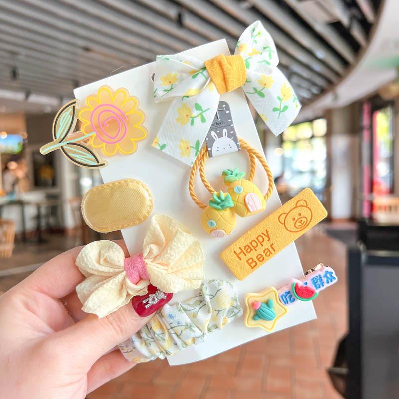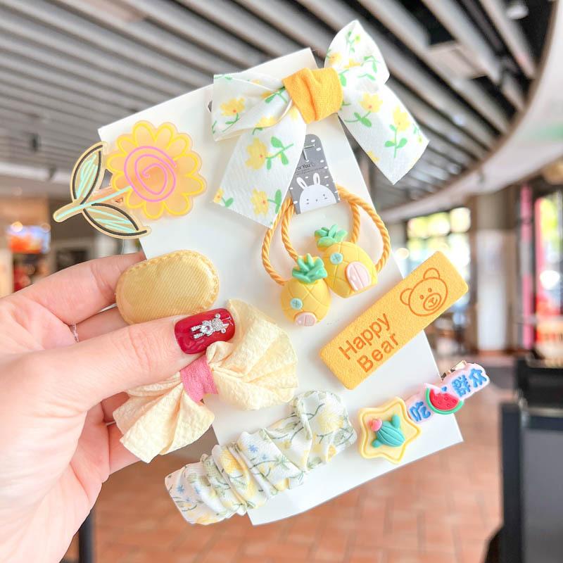 | Horquillas y cuerdas para el cabello de dibujos animados de verano para niños, lindos anillos para el cabello para niñas, juego de horquillas de princesa, accesorios para el cabello de dopamina |