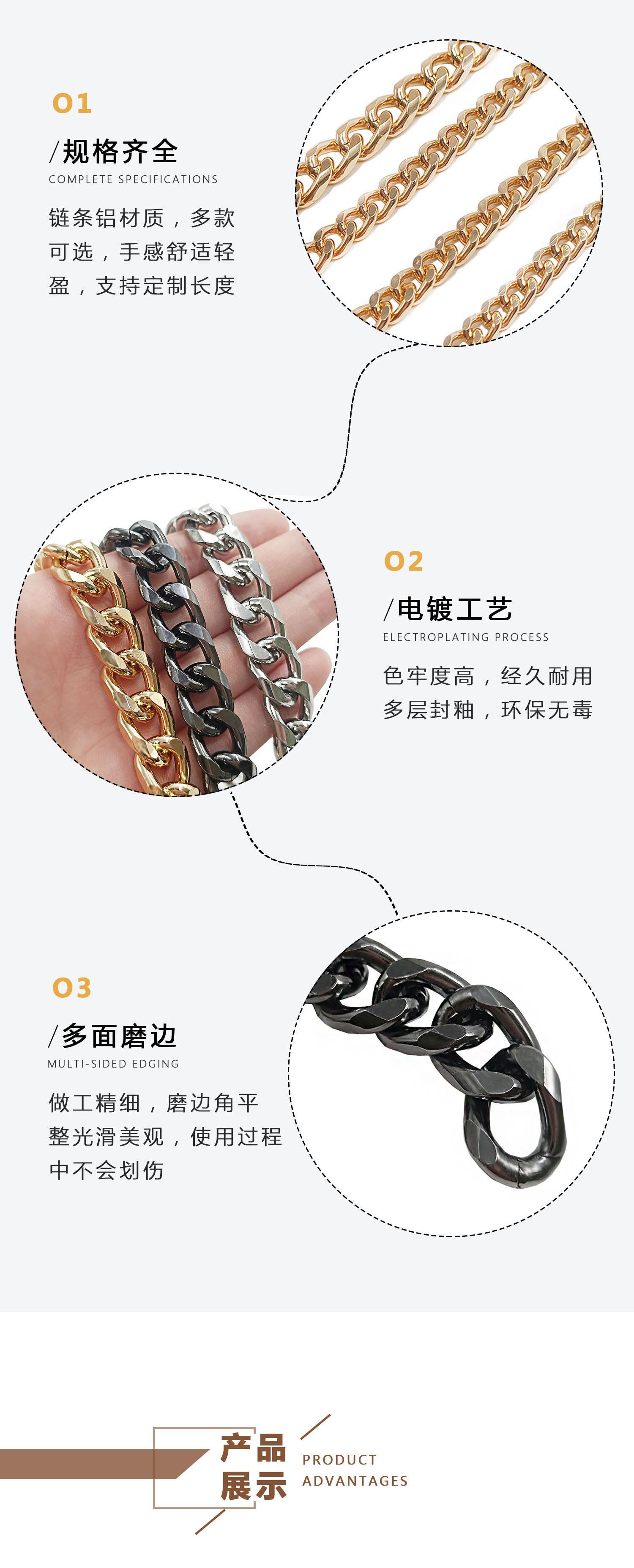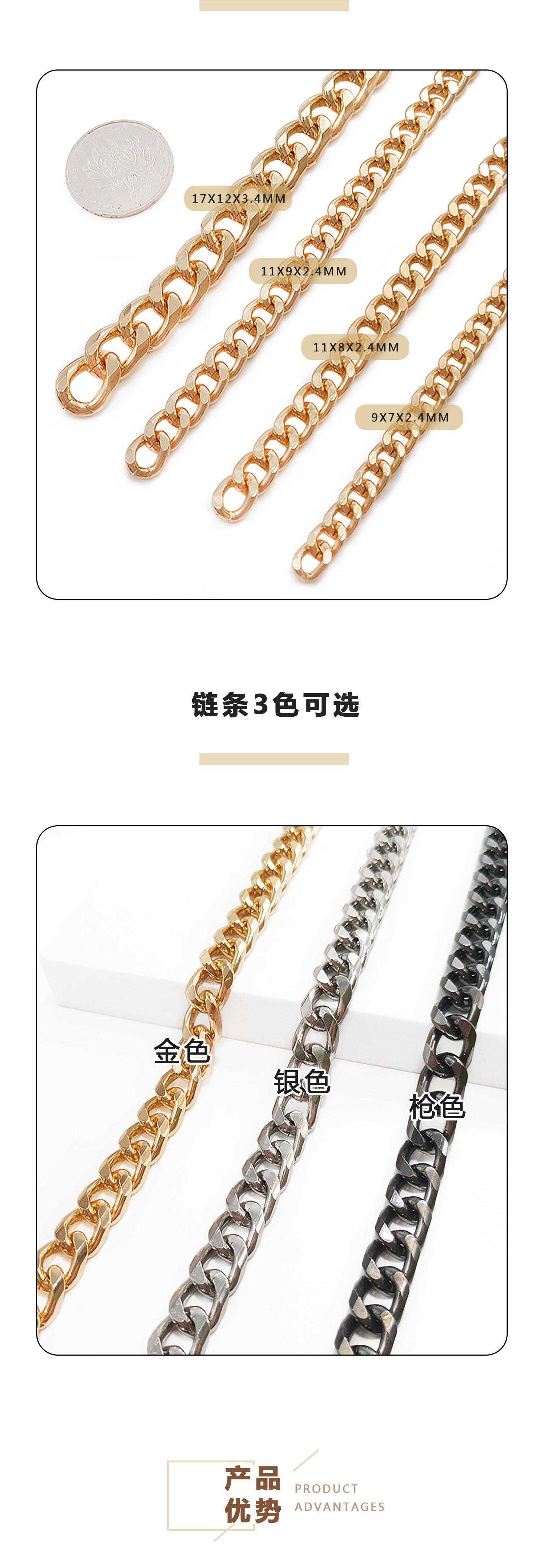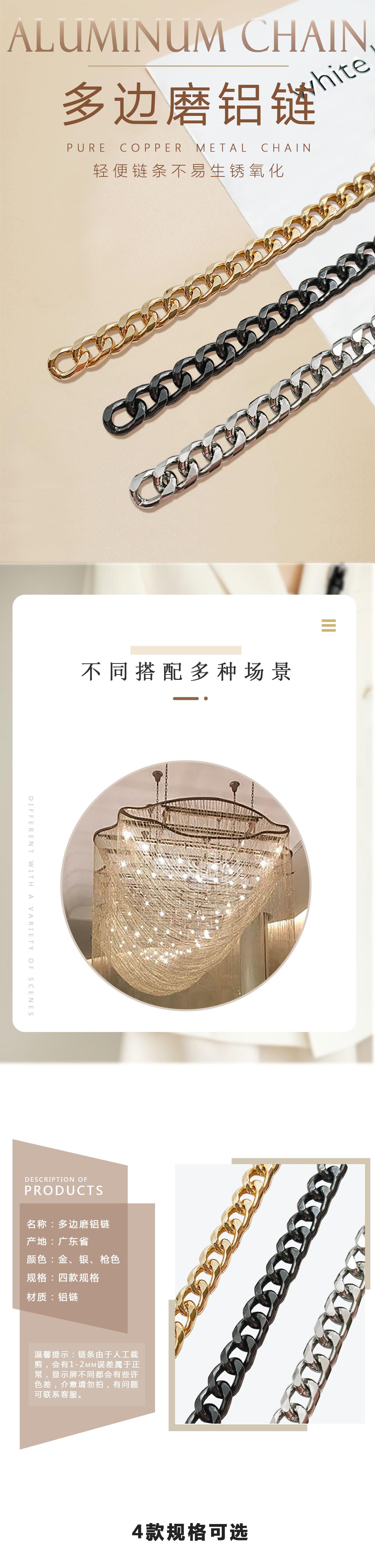 Cadena decorativa de bricolaje, cadena de aluminio de pulido multilateral, cadena desmontable, cadena para bolso, bandolera, decoración de araña de hotel