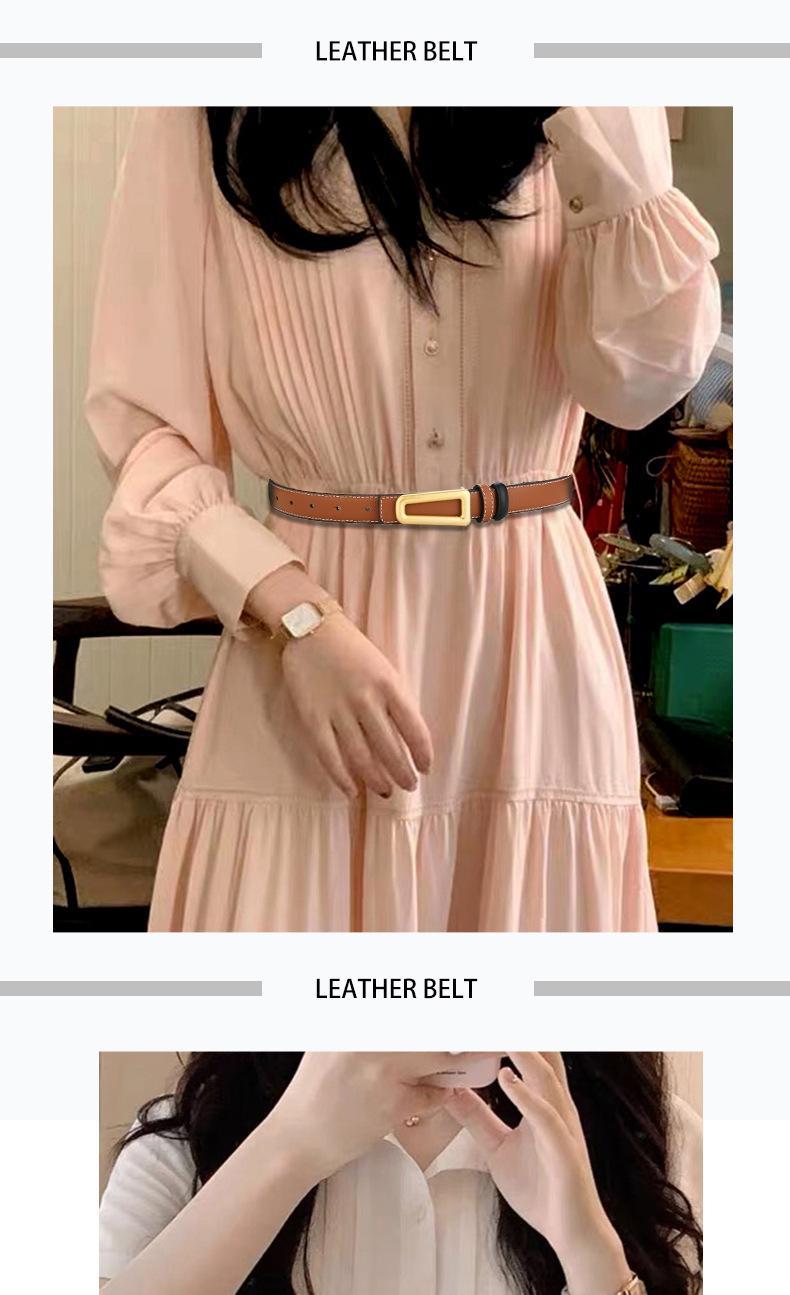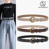 Cinturón de mujer de cuero con hebilla pequeña de calabaza retro, combinable con todo, con hebilla dorada sencilla, estilo casual, para pantalones, bolsos y faldas.