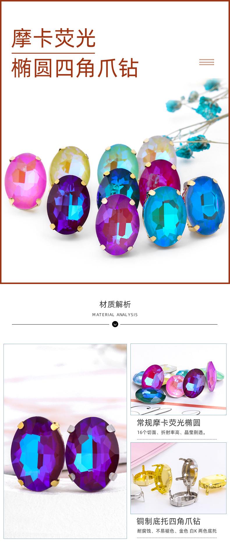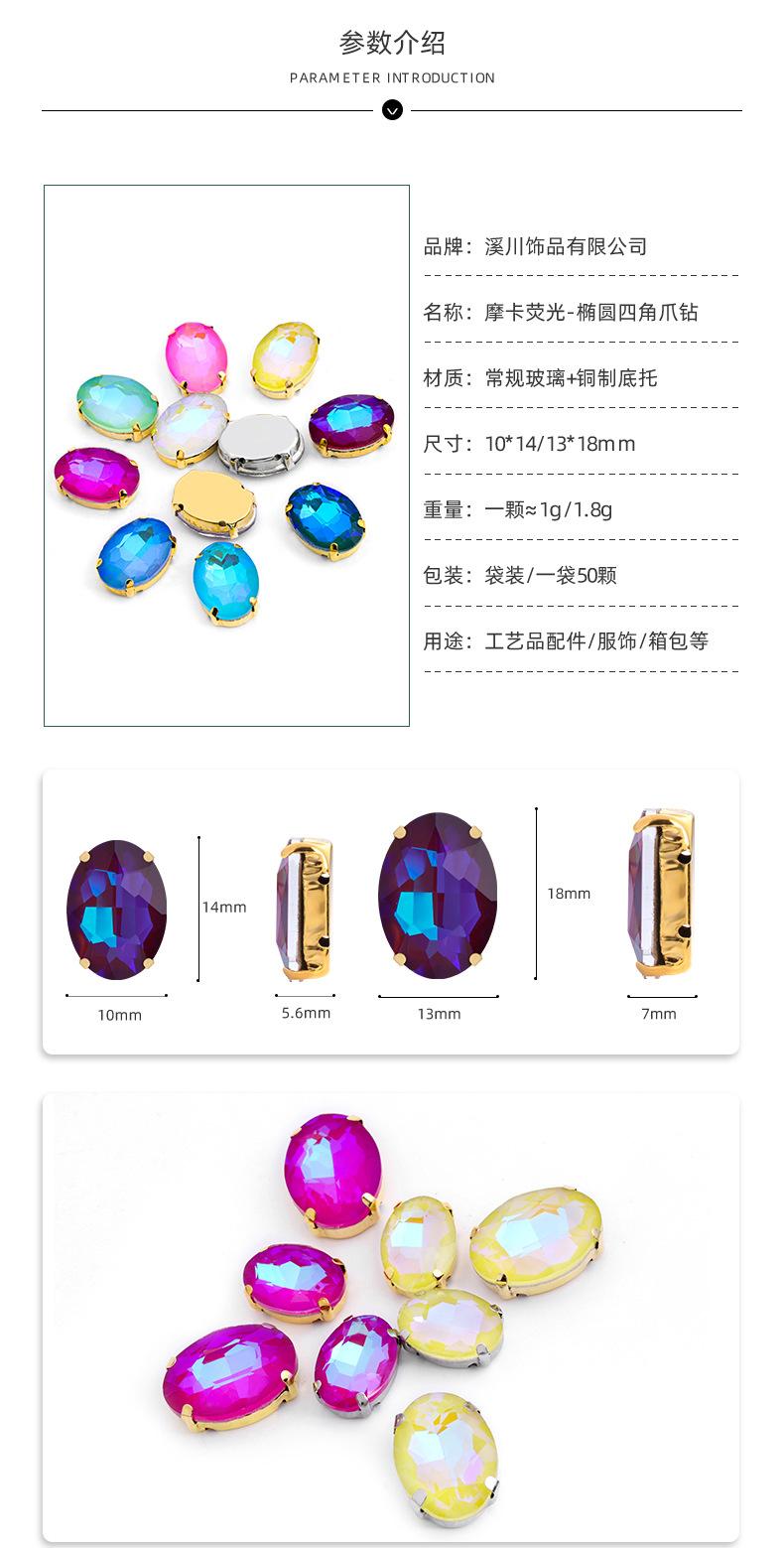 Óvalo Moca Fluorescente Garra de Cuatro Puntas Base de Diamantes No Destiñe Vestido de Novia Joyería de Cristal Bolsa para Zapatos Accesorios Diamante Oval