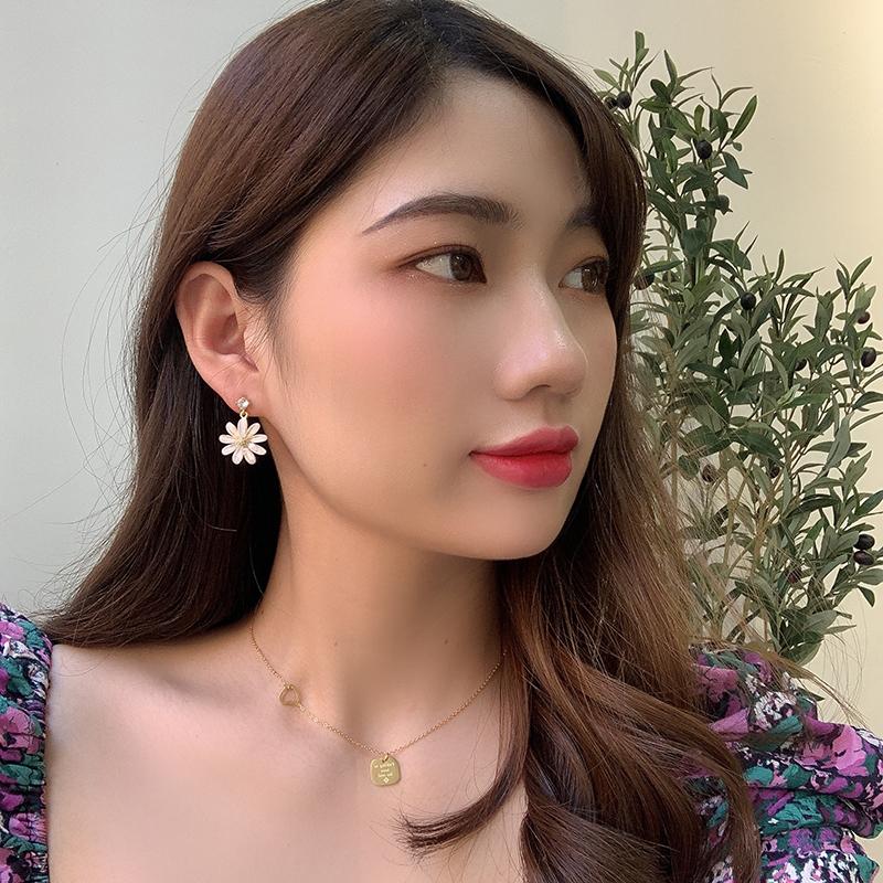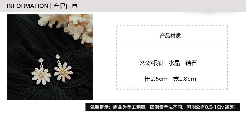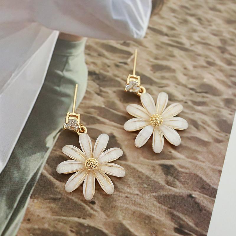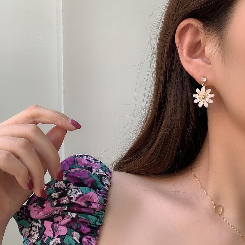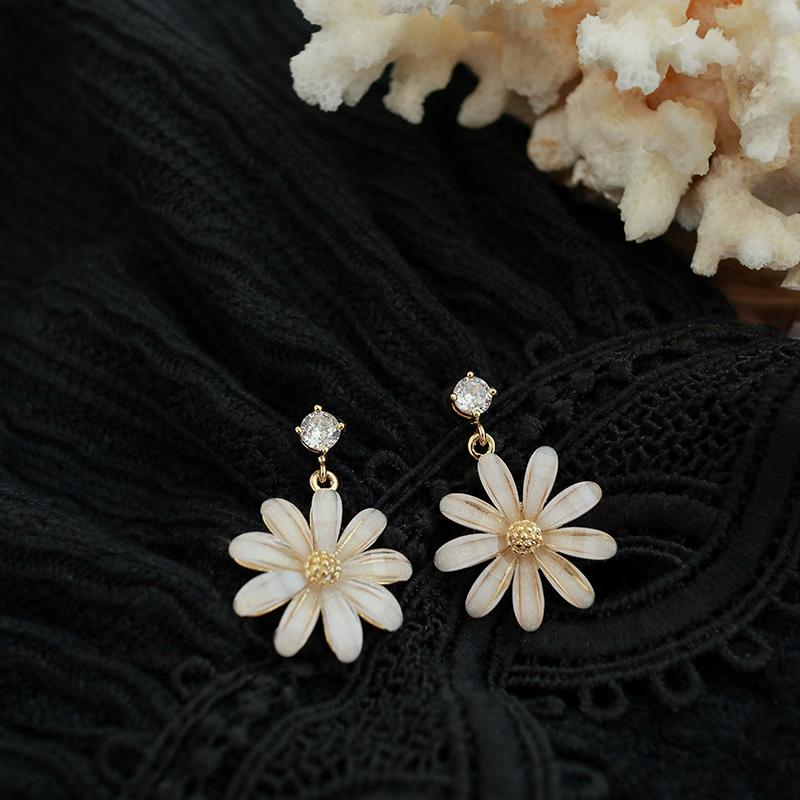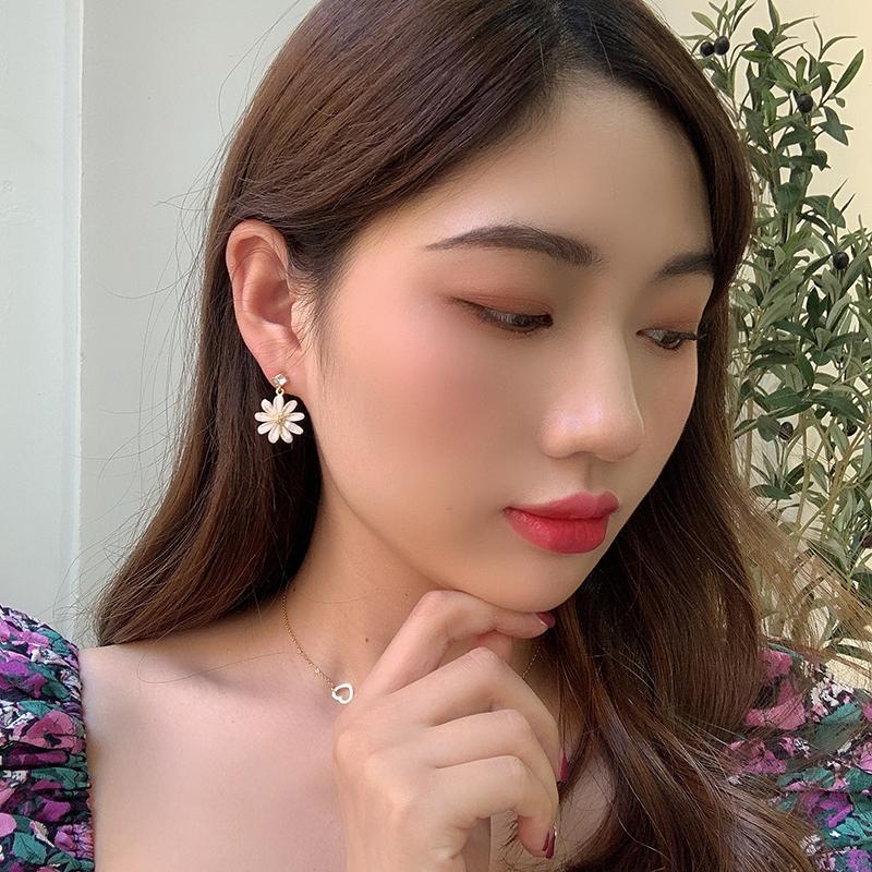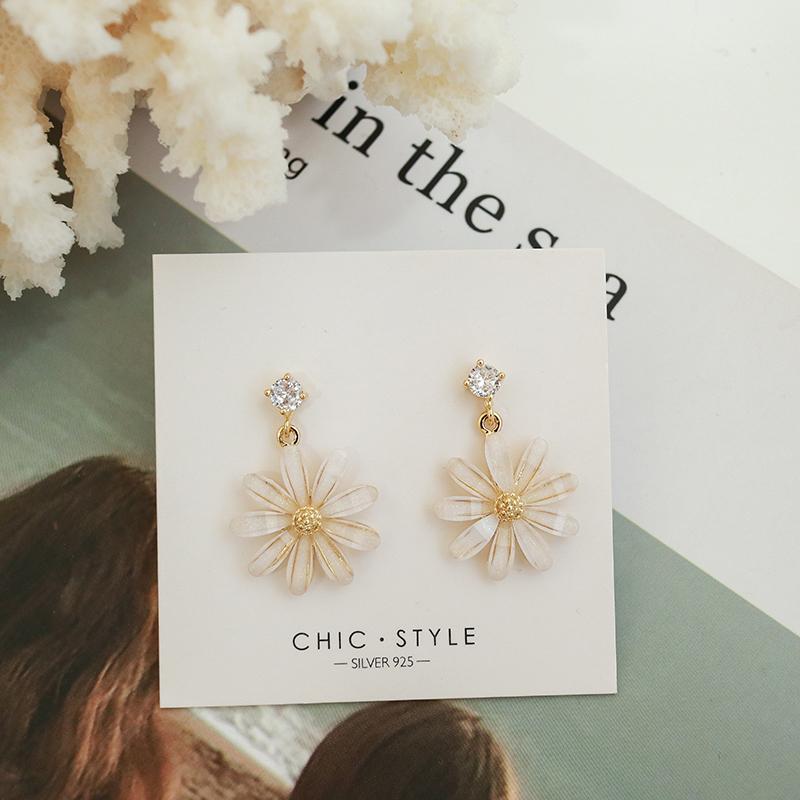 Pendientes coreanos nuevos de plata S925 con forma de flor de sol y margaritas pequeñas con aguja, pendientes coreanos sencillos con diamantes de cristal, pendientes súper llamativos