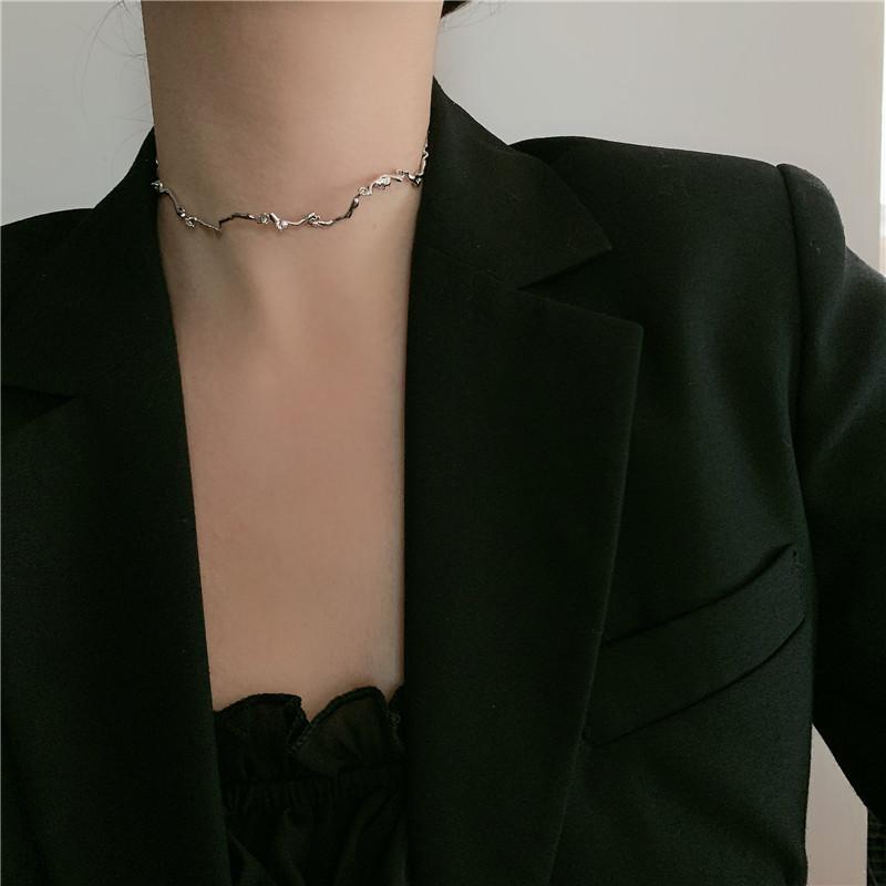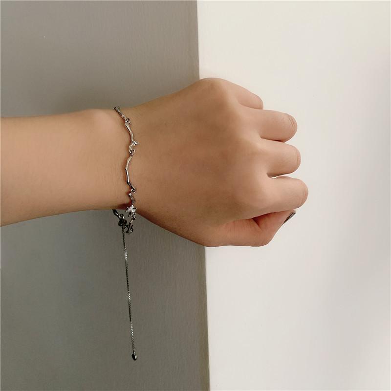 Pulsera de estilo irregular simple de estilo europeo y americano con collar ajustable de metal con incrustaciones de diamantes en forma de onda, pulsera de celebridad de Internet para mujer