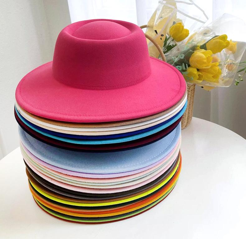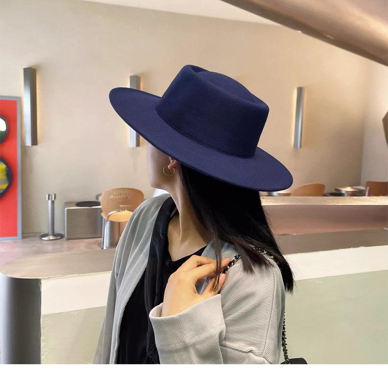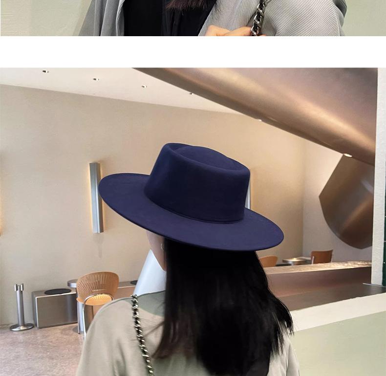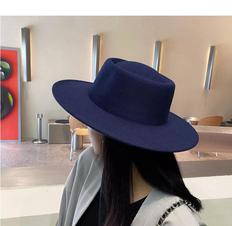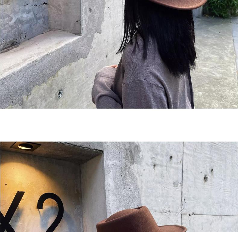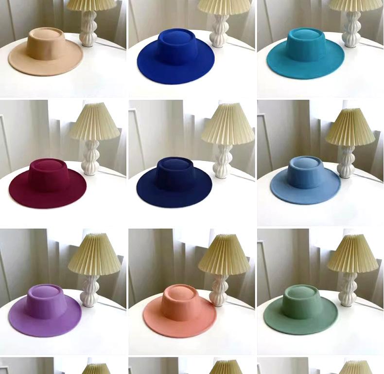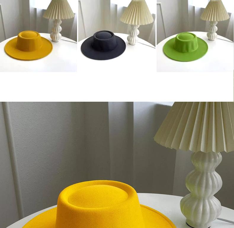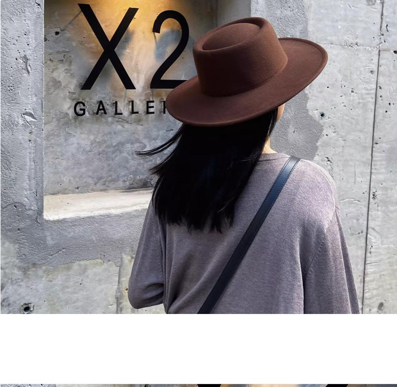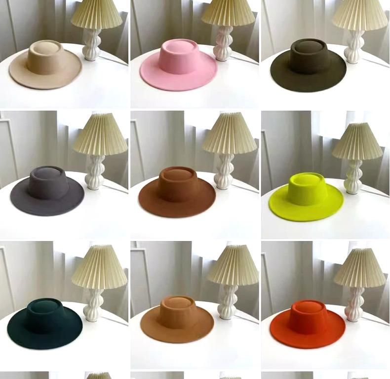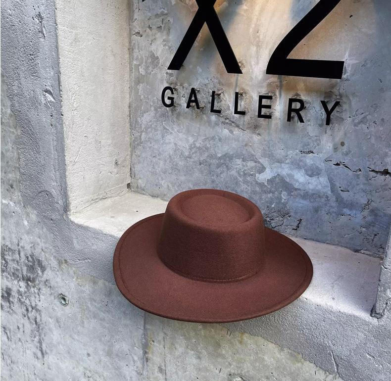 Sombrero Nuevo de Otoño e Invierno 2025 de Lana Imitación para Mujer, Color Puro, Versátil, Sombrero Francés, Británico, de Ala Ancha, Cúpula, Parte Superior Cóncava, Sombrero de Fieltro