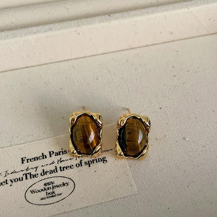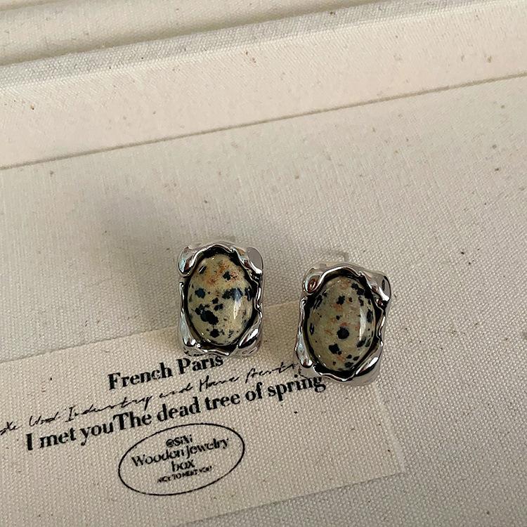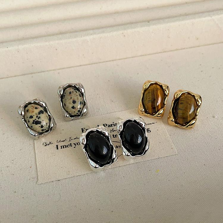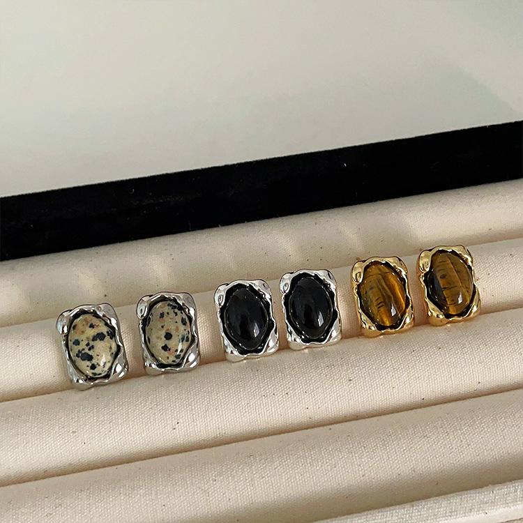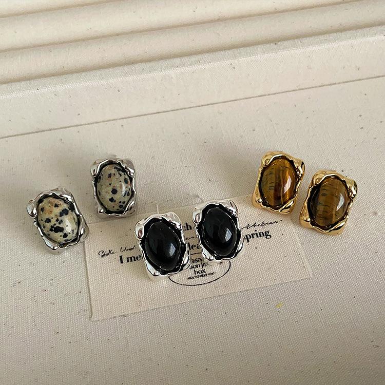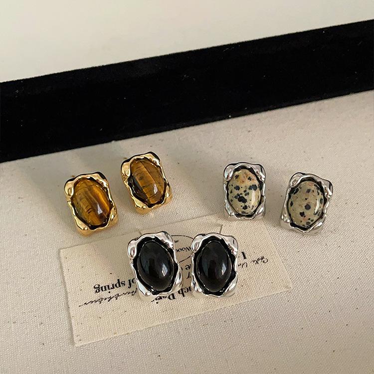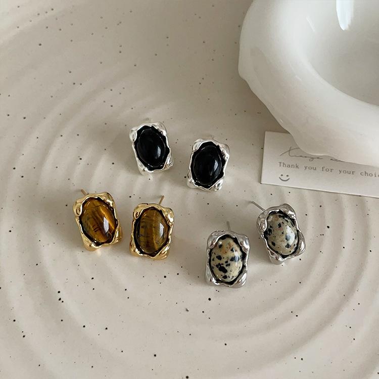 Pendientes de metal irregulares con piedra natural, estilo nicho femenino, retro, sencillos, combinables con todo, a la moda