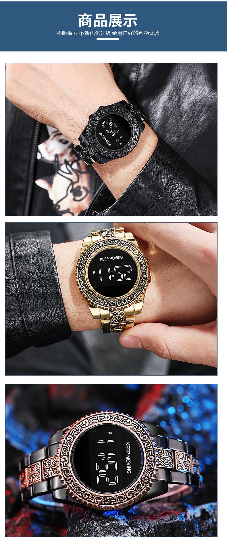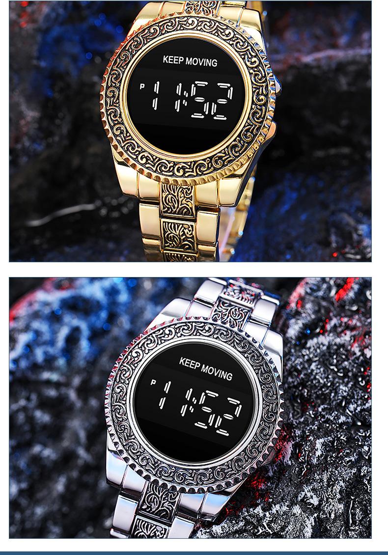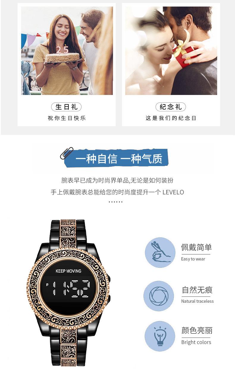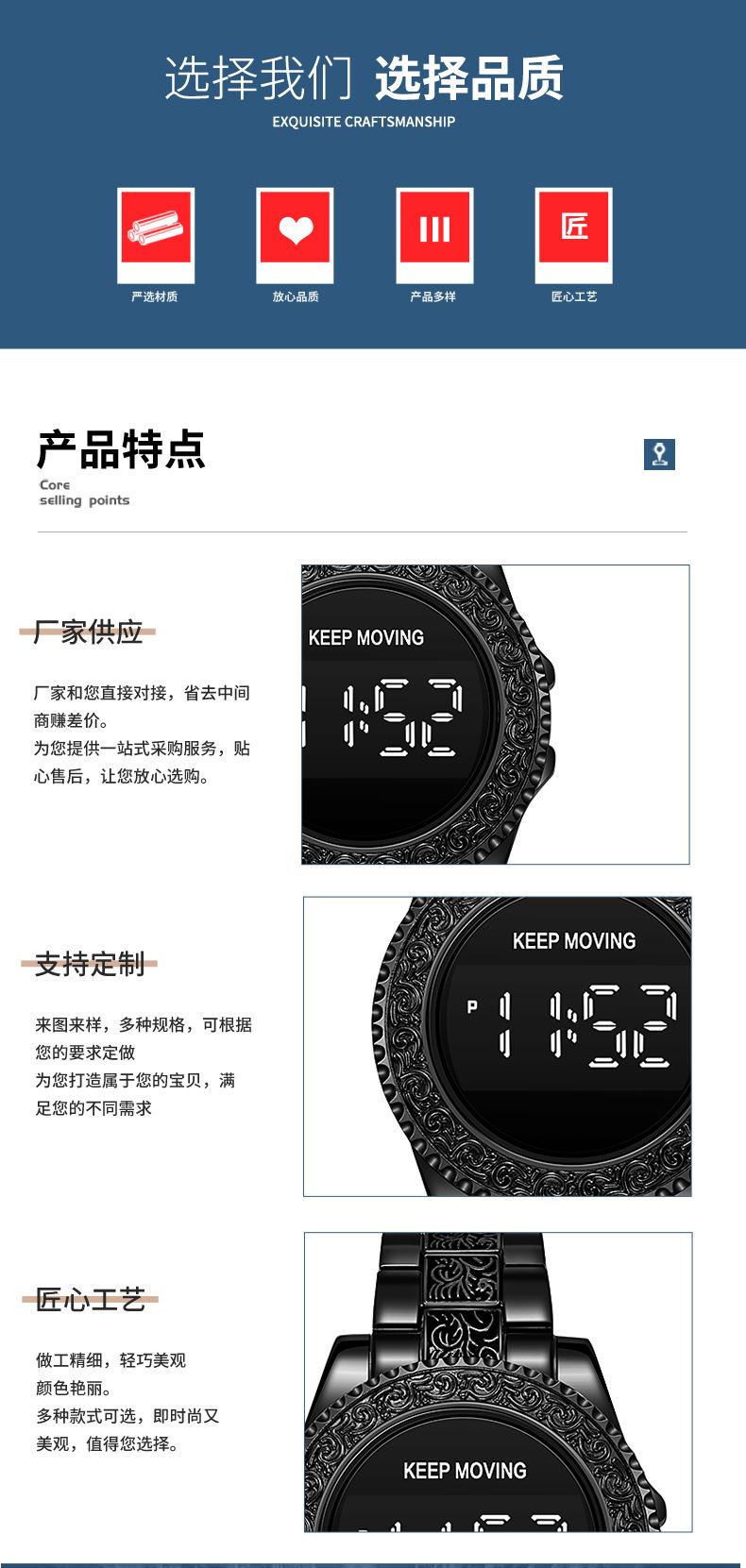 Estilo Comercio Exterior Led Incrustado Negocios Metal Moda para Mujer Tendencia Táctil Redondo Reloj Electrónico Led