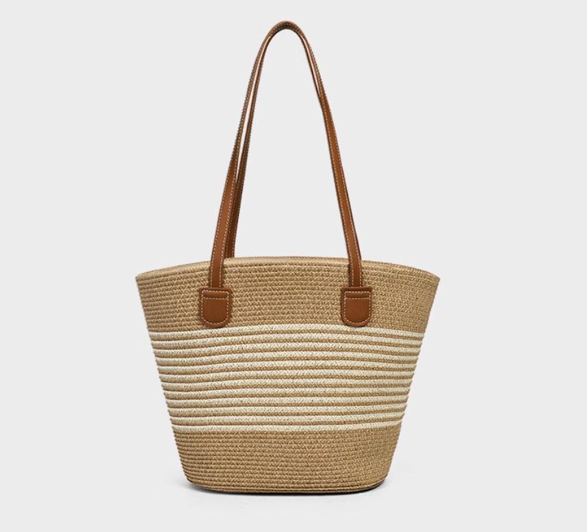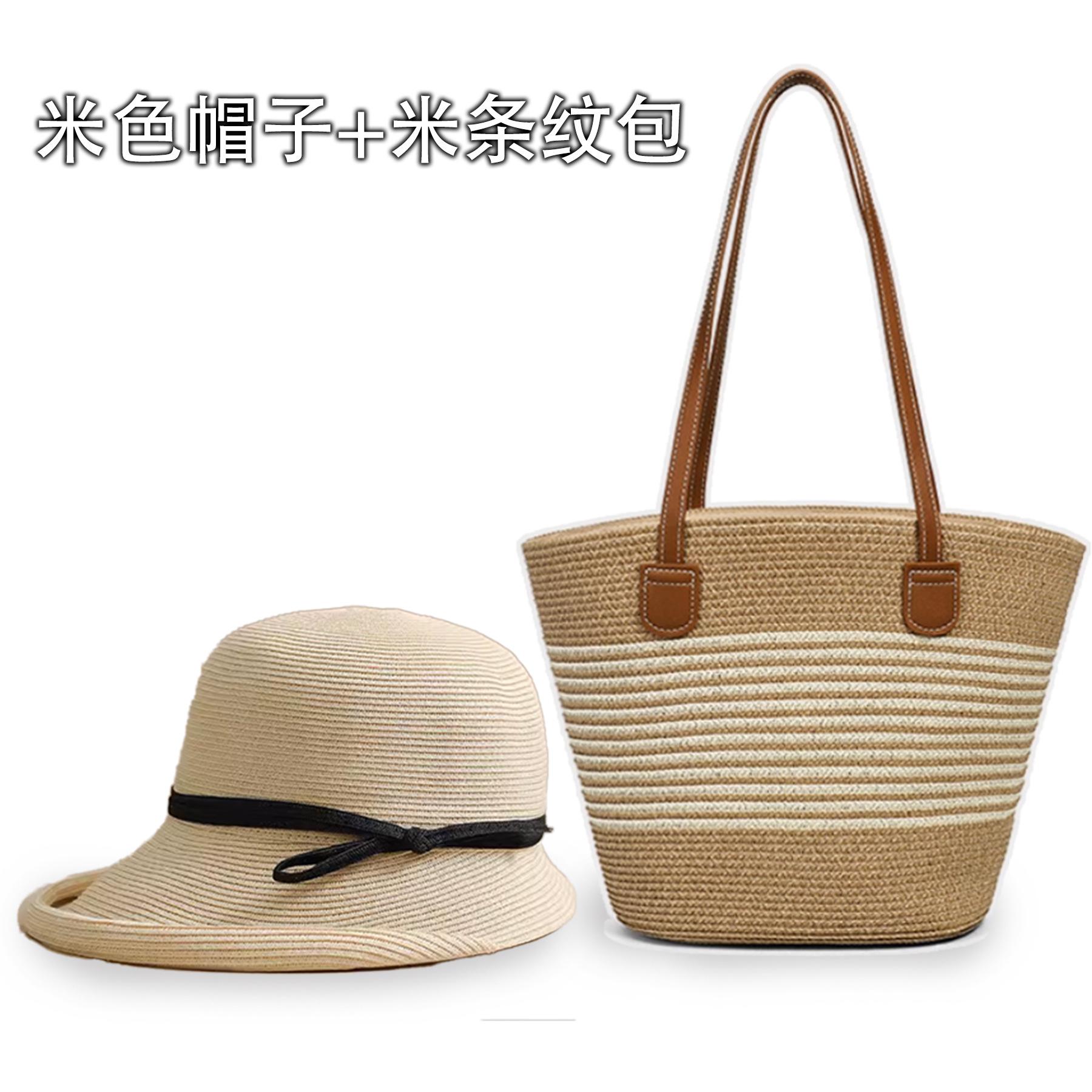 Beige, Khaki, Beige Hat Rice Stripe Bag, Khaki Hat Black Striped Bag, Beige striped bag, black striped bag