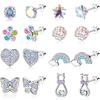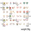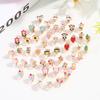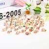 Conjunto de 30 pares de pendientes de animales lindos de colores mezclados con combinación de zorro, rana, hongo y margarita.