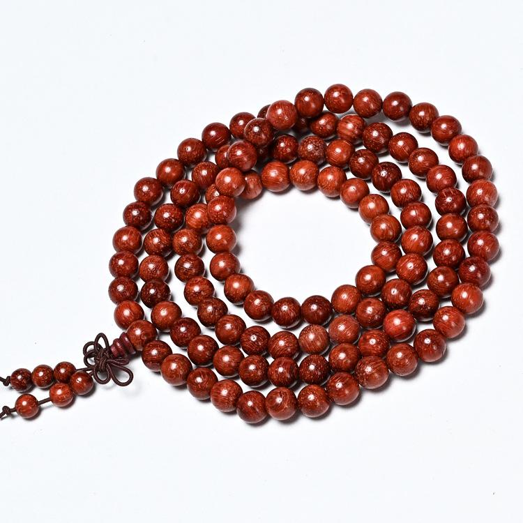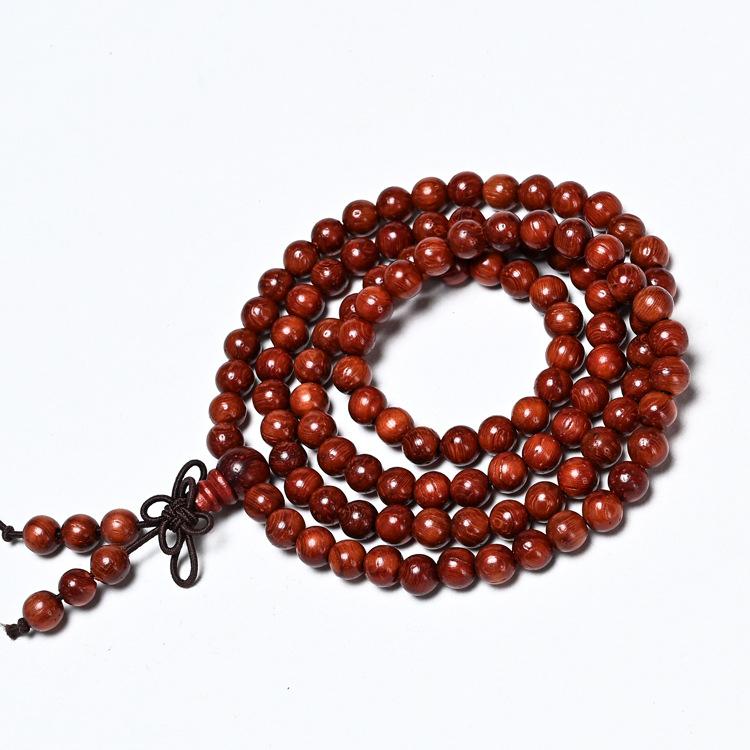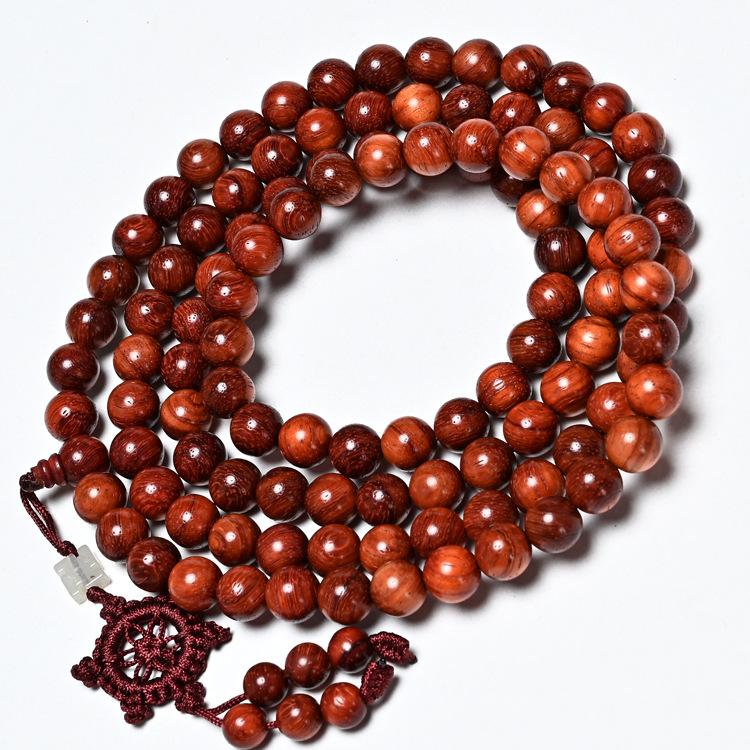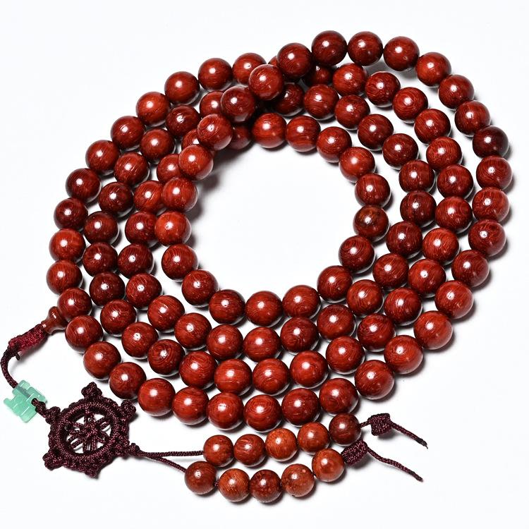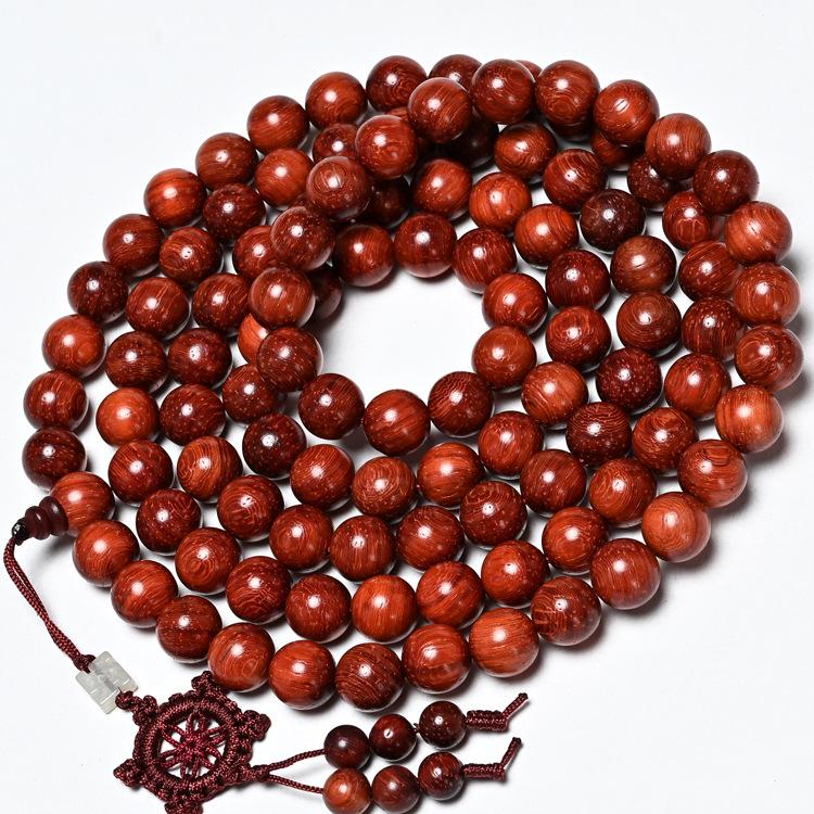 Sándalo rojo ojo de gato de Brasil 108 cuentas de pera azafrán sándalo rojo de hoja pequeña para hombres y mujeres parejas pulsera de mano texto juego