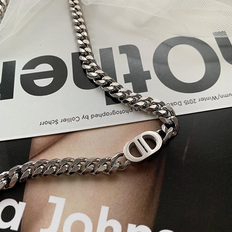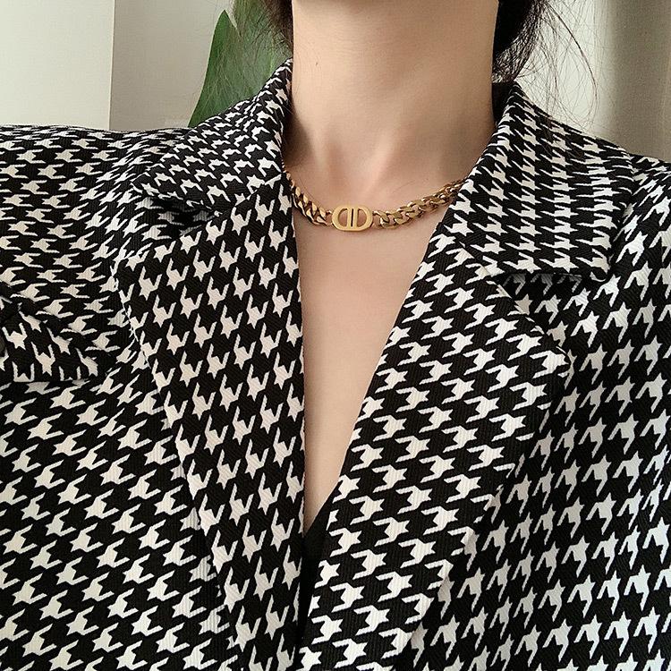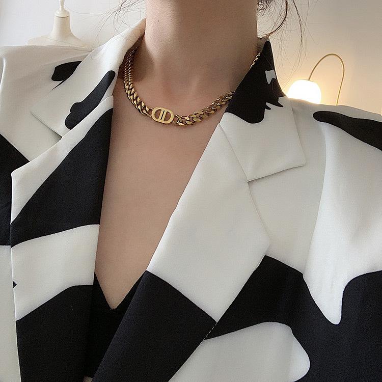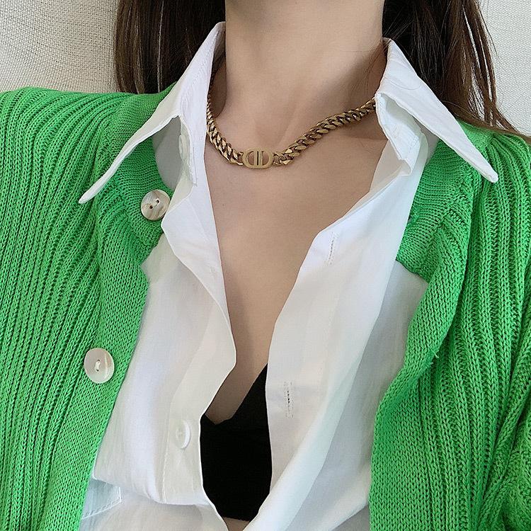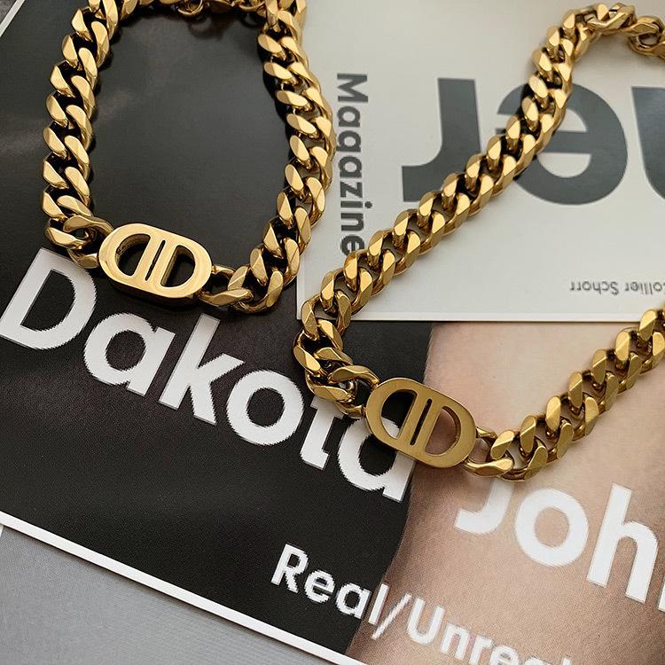 Emin Europeo y Americano ins Cyber Celebridad Cadena Dorada Gruesa Letra Collar de Acero de Titanio para Mujer Hip-hop Distintiva Cadena Corta Clavícula Versátil