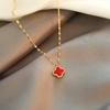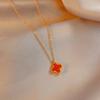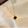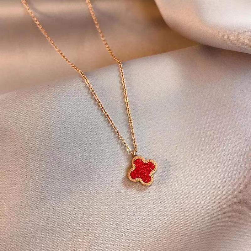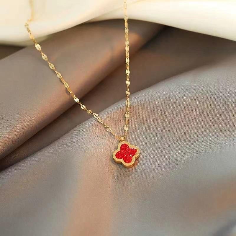 Collar de trébol de cuatro hojas de doble cara con diamantes de imitación de acero de titanio de moda coreana para mujer, joyería de oro rosa que no se decolora.