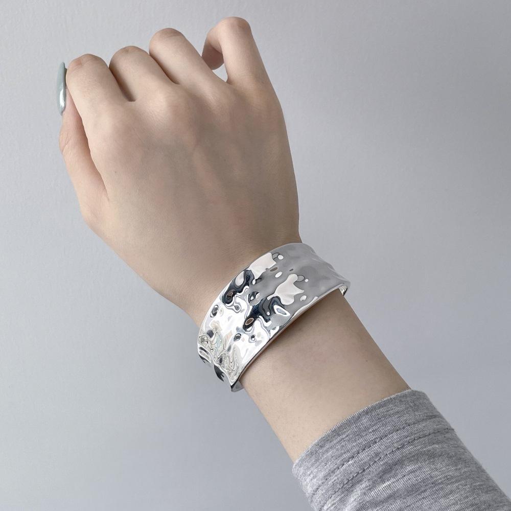 Pulsera de plata de ley S925 estilo coreano INS, nueva, para mujer, con diseño plisado de cara ancha, ligera, de lujo, estilo industrial pesado.