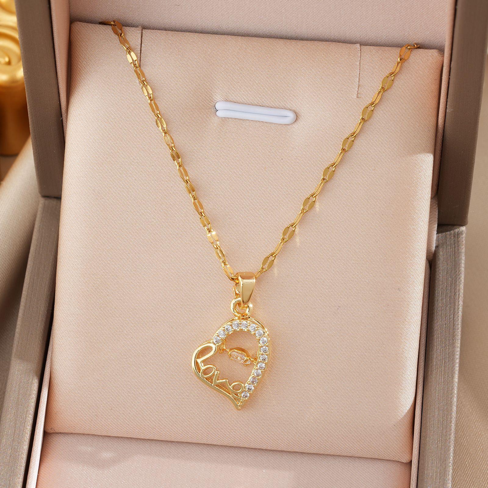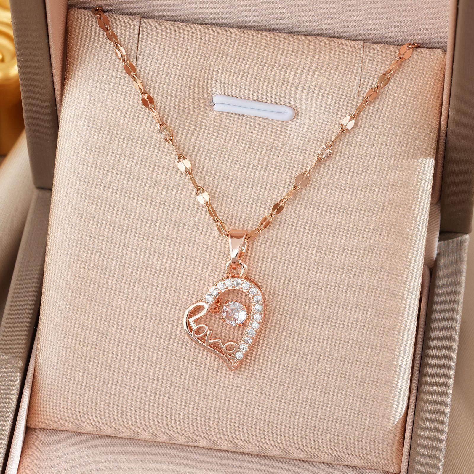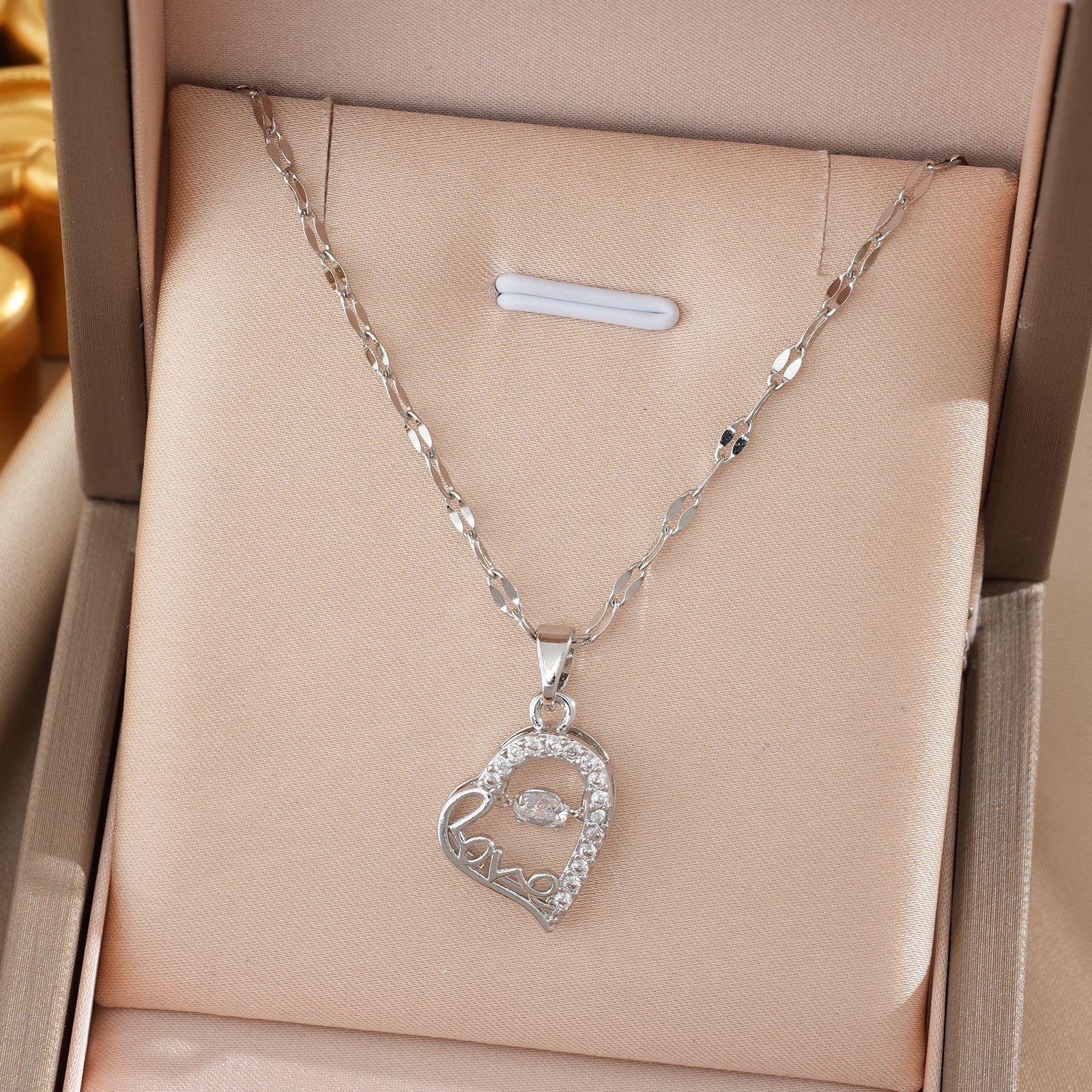 Collar de acero de titanio con colgante inteligente de amor de estilo coreano para mujer, cadena de clavícula sencilla de lujo a la moda, joyería al por mayor