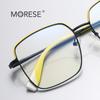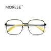 Montura de gafas ópticas de estilo europeo y americano de moda con marco completo de metal antiazul con borde cruzado de color caramelo 3027 para mujer