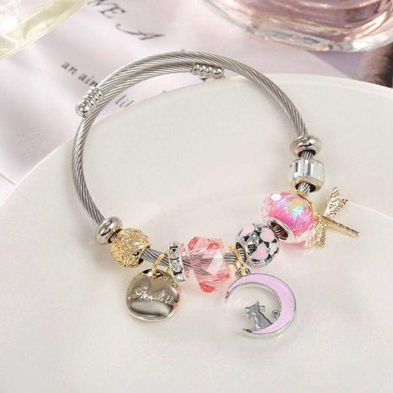 Compra Pulsera de cuentas con colgante de luna DIY de Panjia con diseño de gato Kulomi kt de dibujos animados de Europa y Estados Unidos, joyería al por mayor al por mayor en Joom.pro