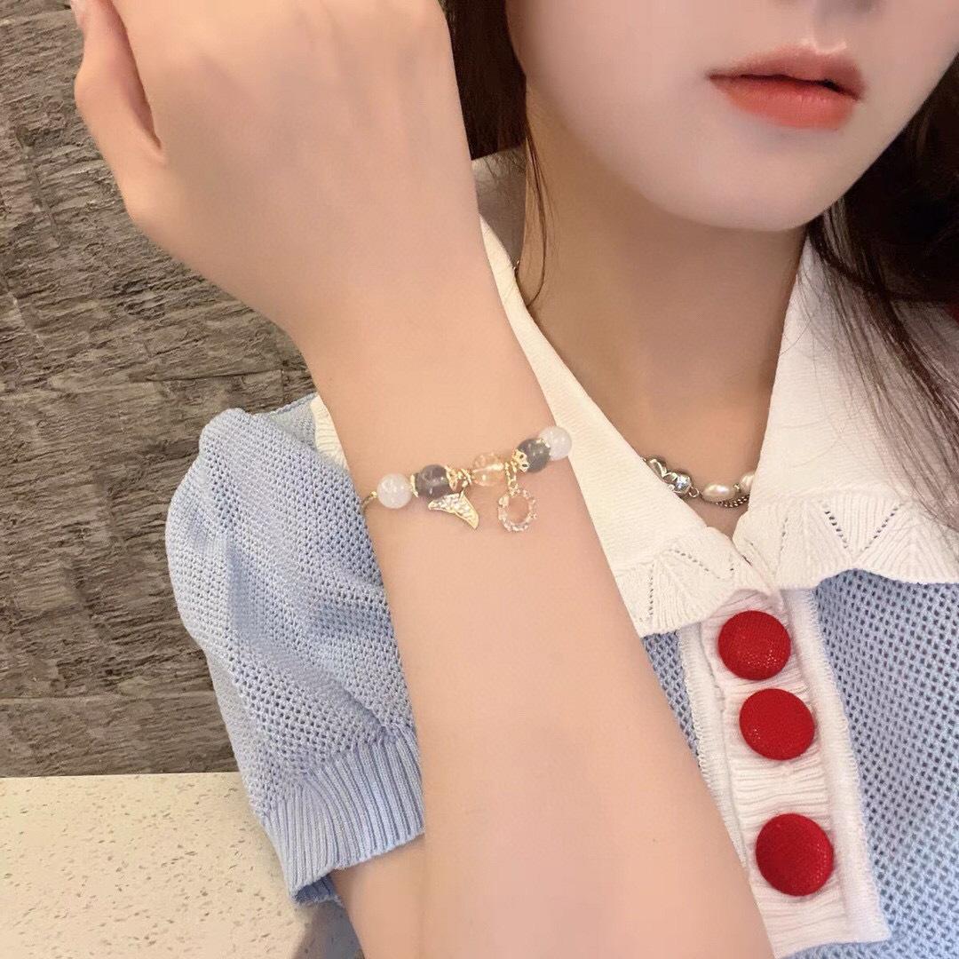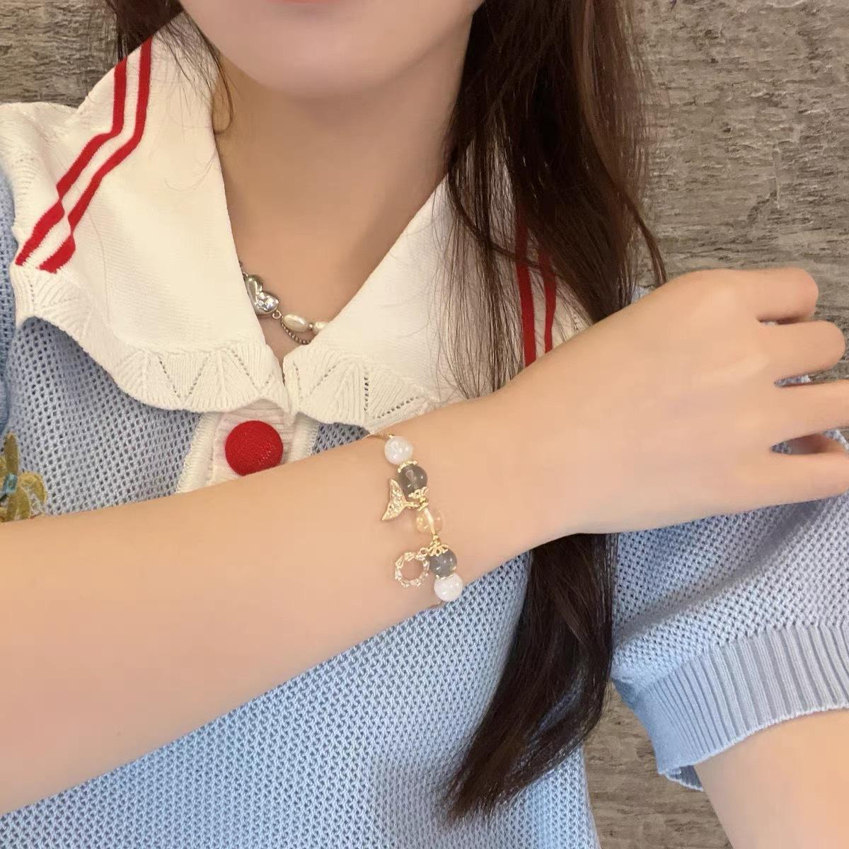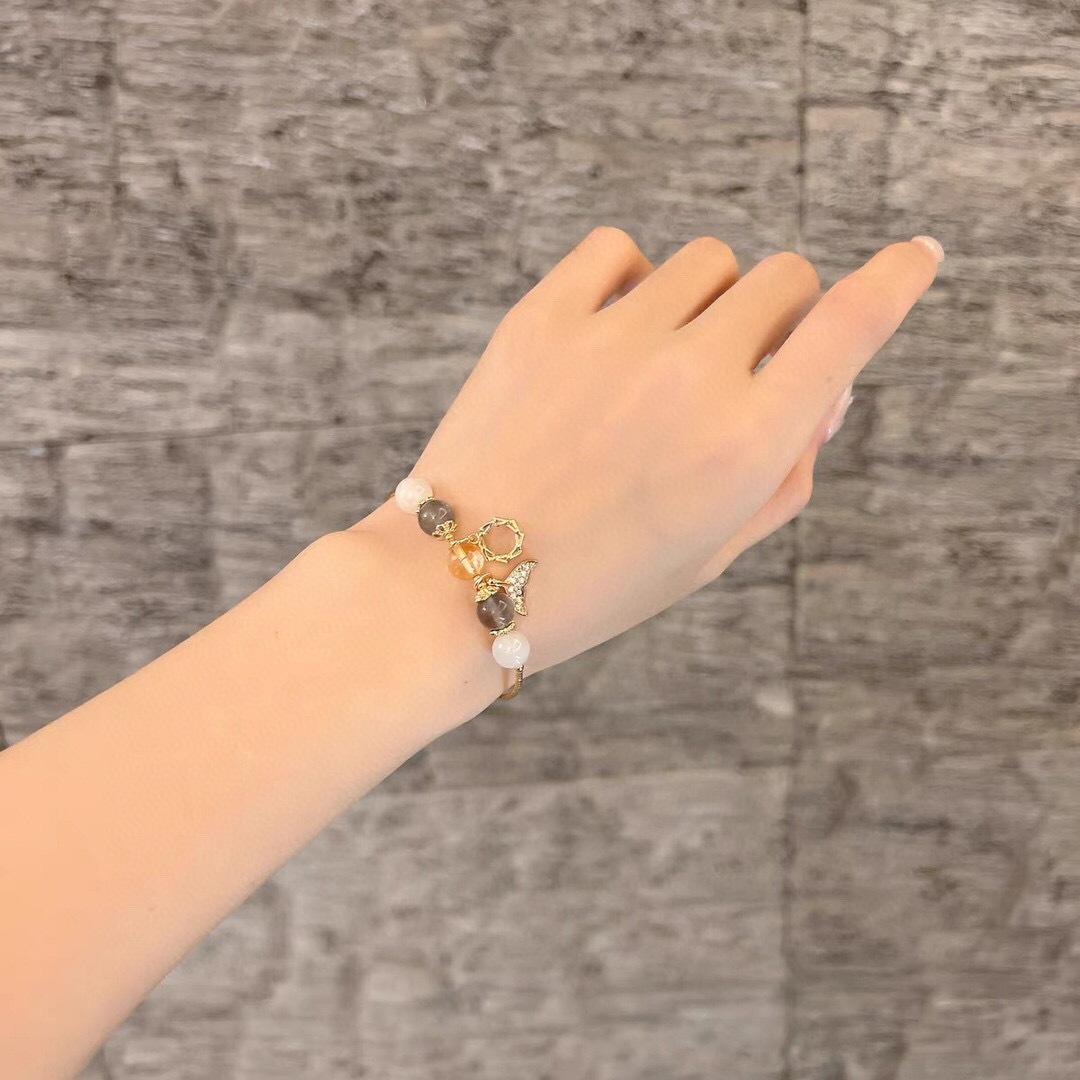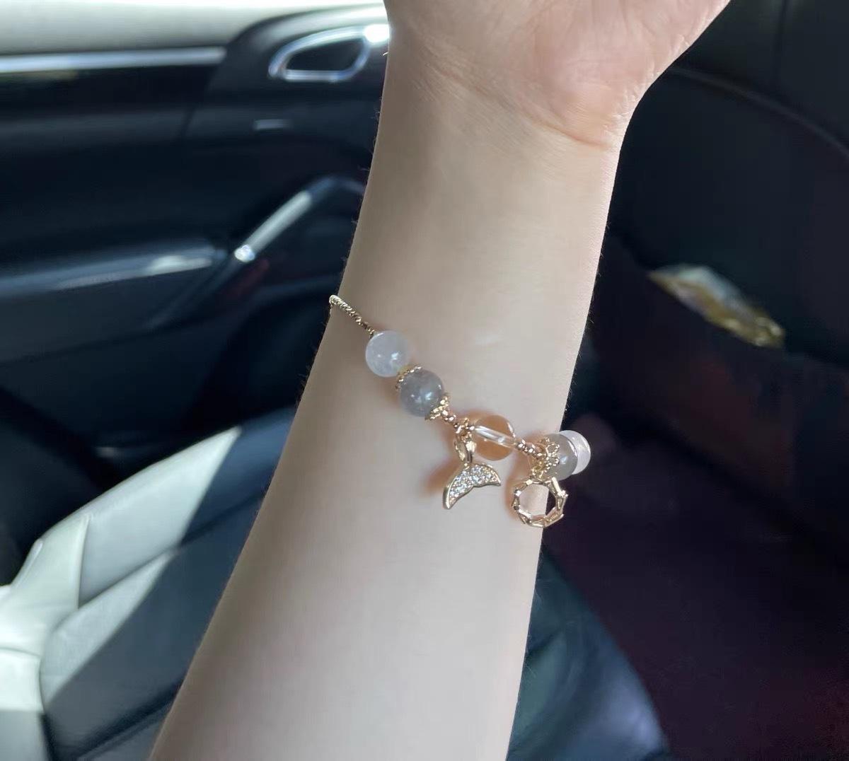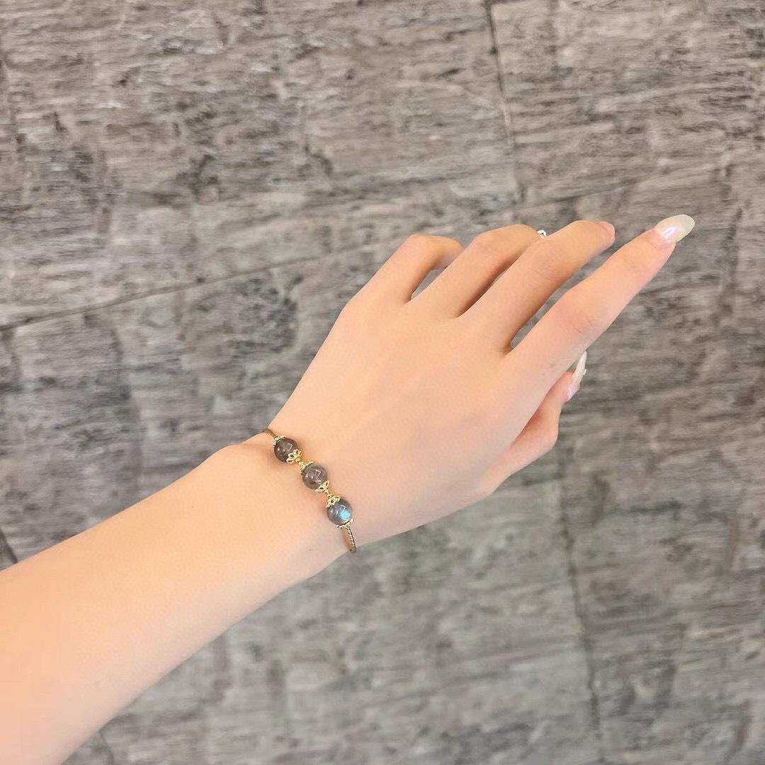 Pulsera de piedra lunar gris natural Qiaoen para mujer, cuentas, luz de luna azul, citrino, pulsera DIY, joyería, joyería al por mayor