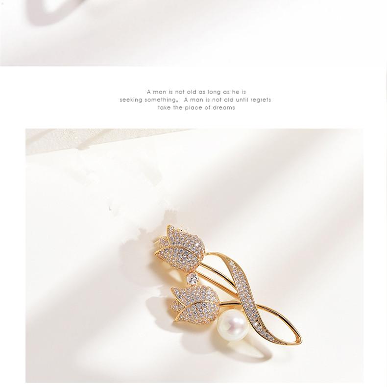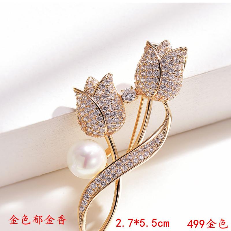 Nuevo broche de flor de tulipán, alfiler antiluz para traje, ramillete, alfiler para cuello, chapado, joyería de estilo coreano al por mayor