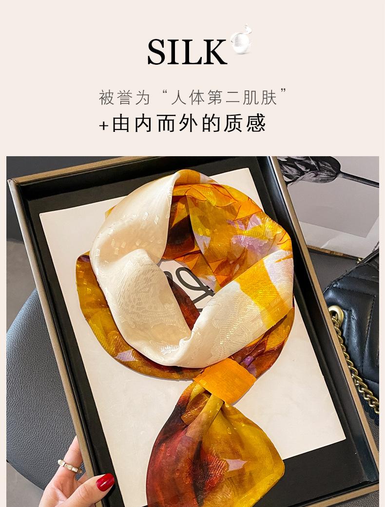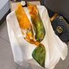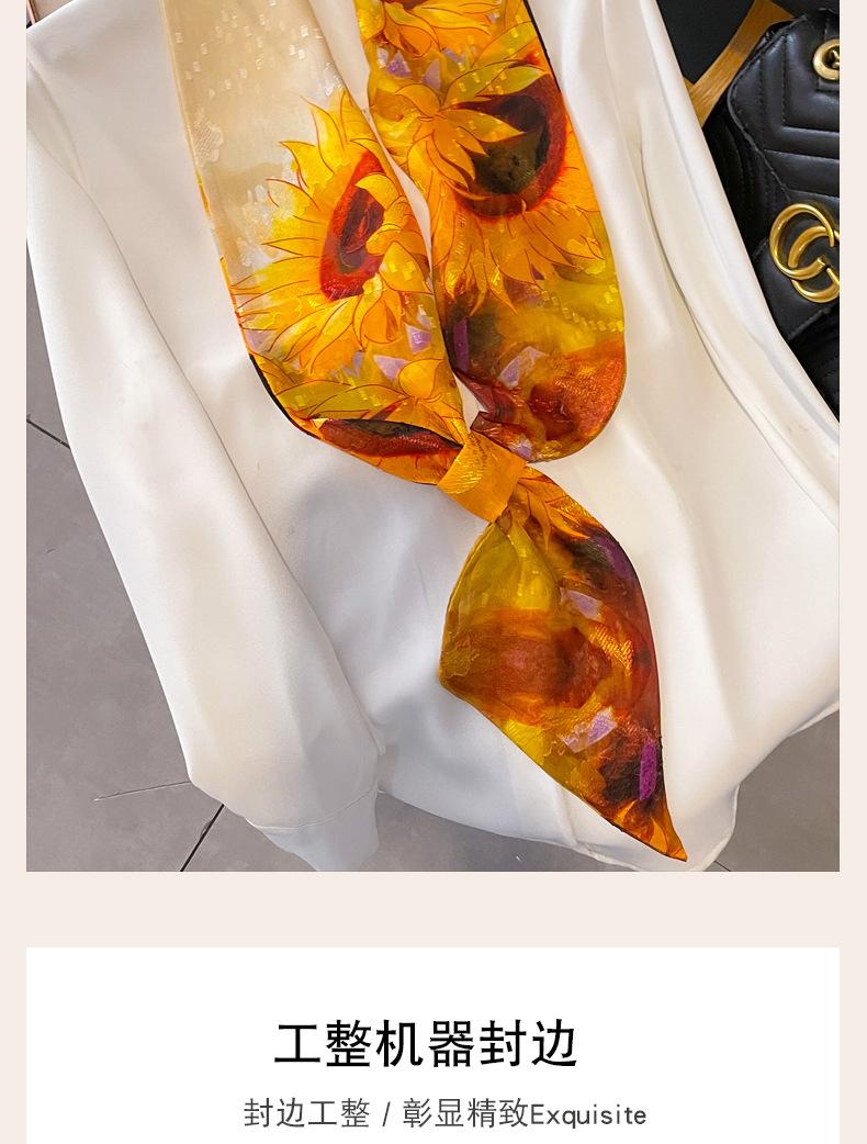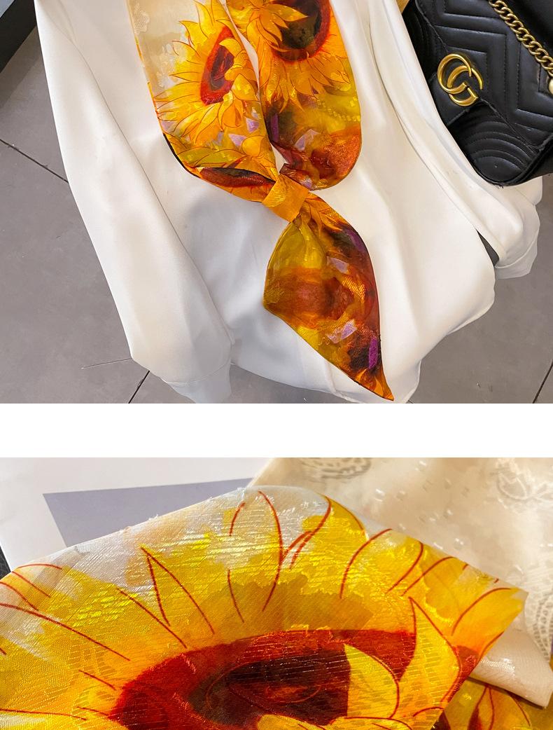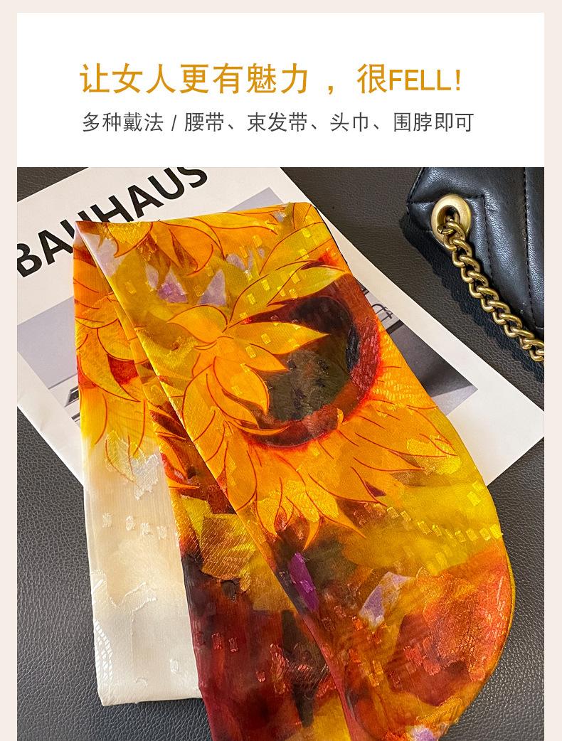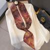 Primavera y Otoño Seda pañuelo de seda pequeño cinta pañuelo largo delgado estrecho para mujer vintage pintura al óleo blanco amarillo banda para el cabello pañuelo delgado