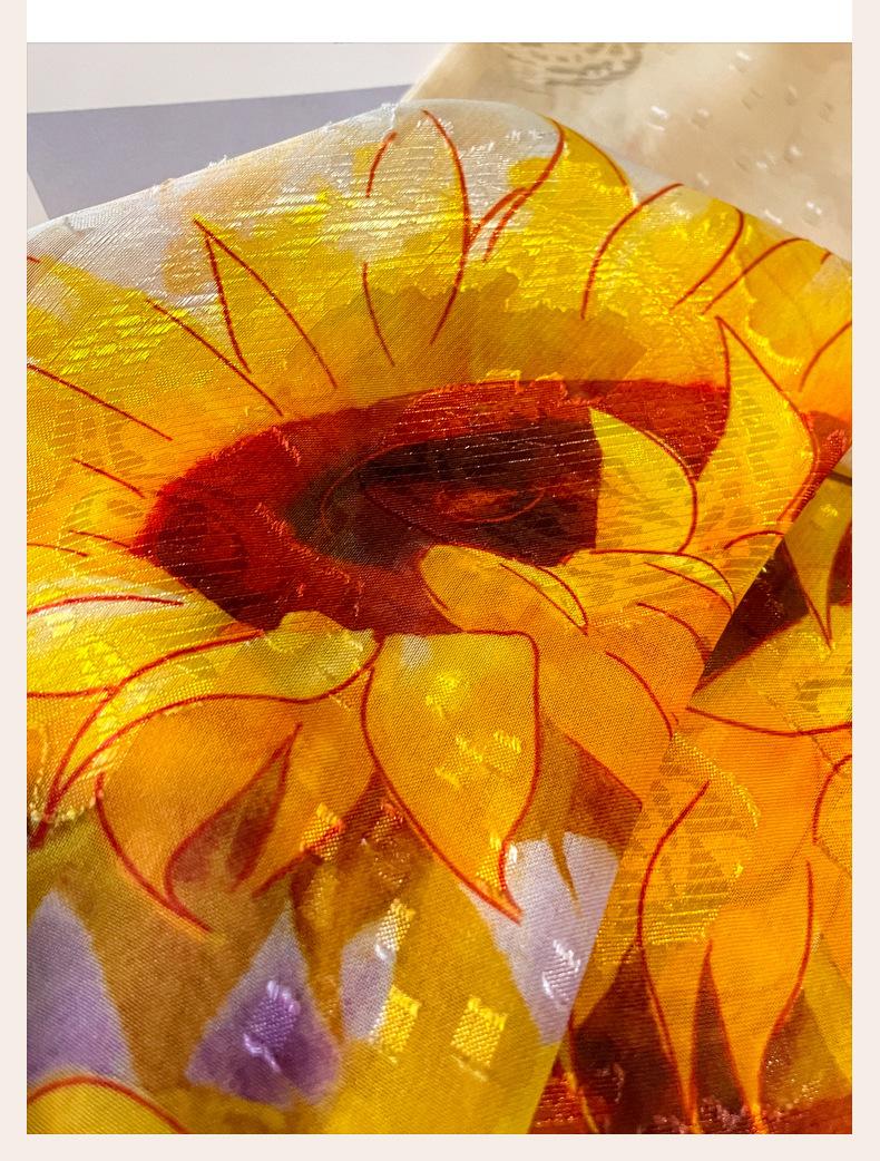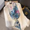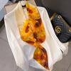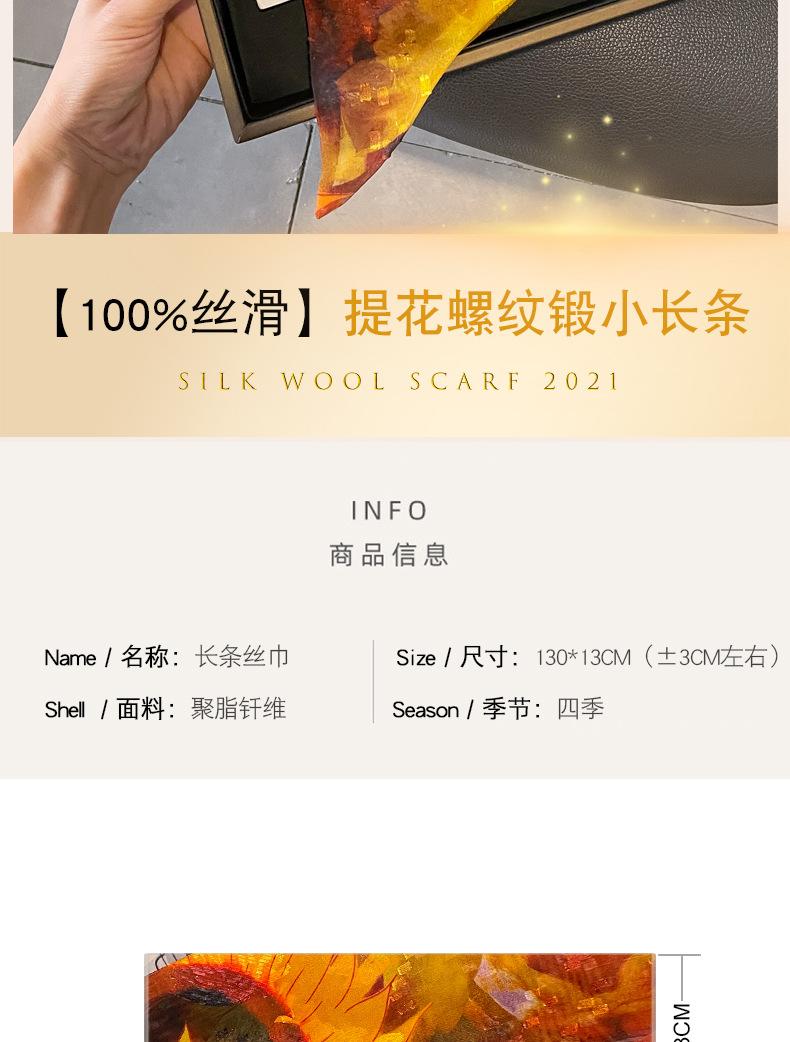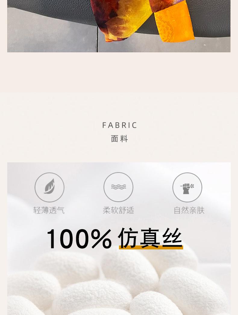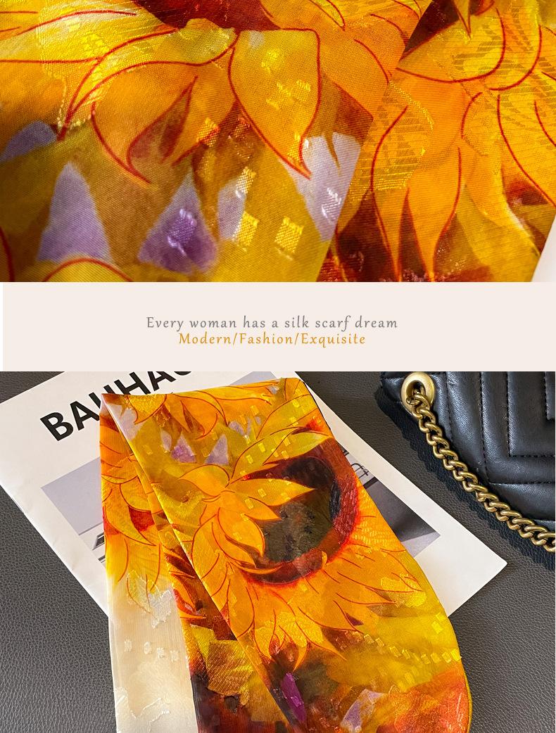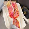 Primavera y Otoño Seda pañuelo de seda pequeño cinta pañuelo largo delgado estrecho para mujer vintage pintura al óleo blanco amarillo banda para el cabello pañuelo delgado