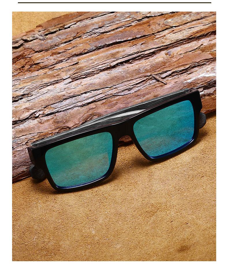 Bright Black Frame Ice Blue/Brushed Bamboo, Douhua whole Tea/zebra wood