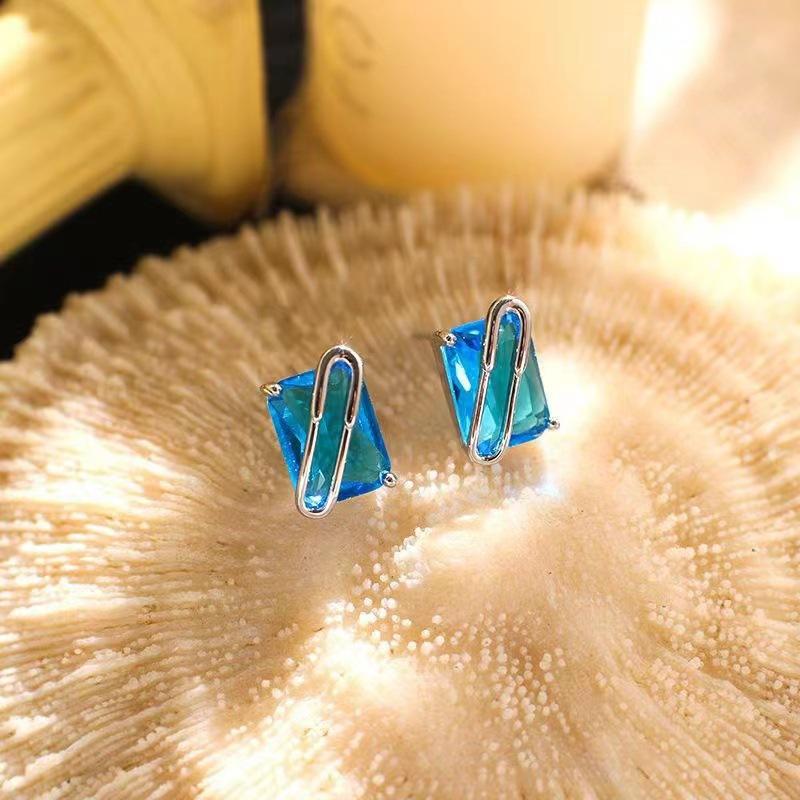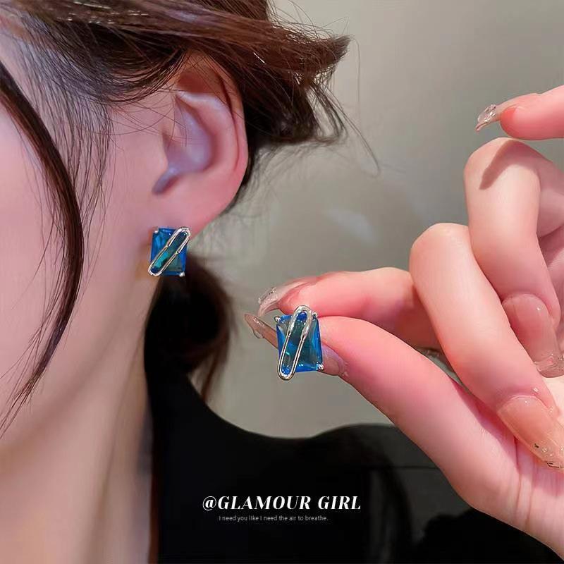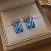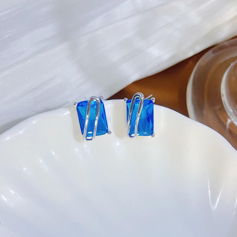 Pendientes de metal cuadrados con microincrustaciones de circonita azul, diseño de nicho, estilo hip-hop, geométricos y atmosféricos, accesorios para las orejas.