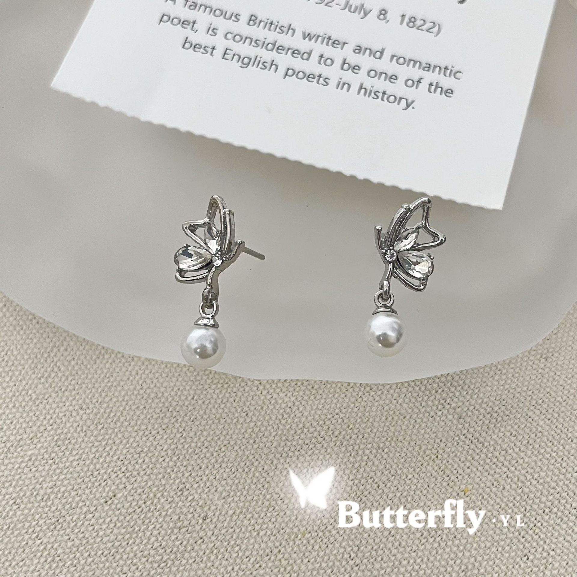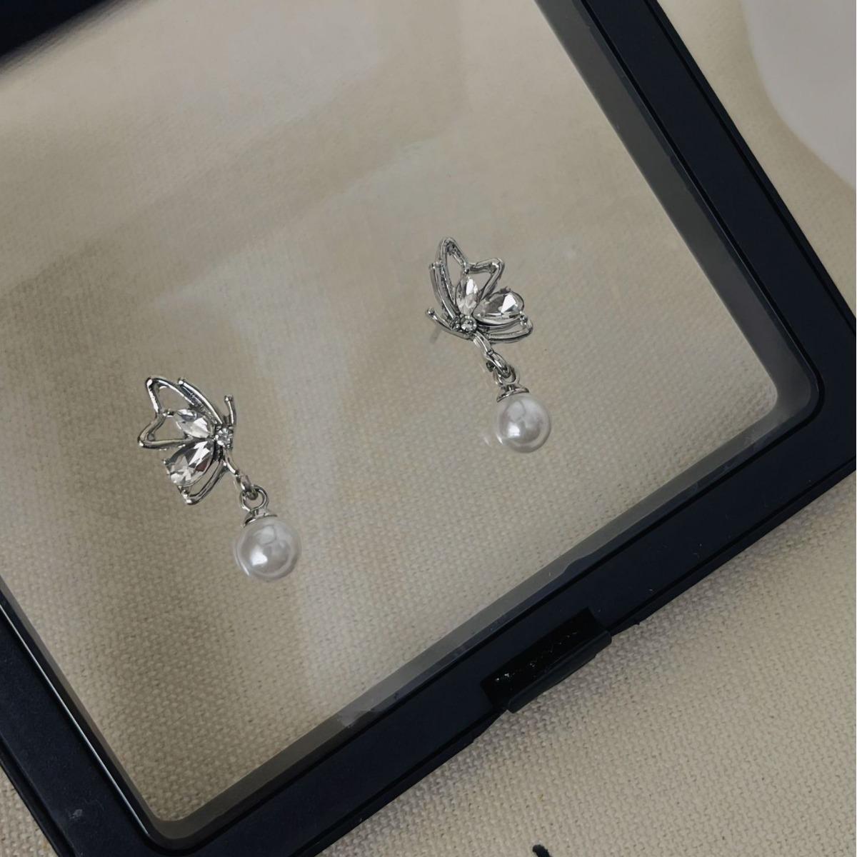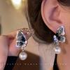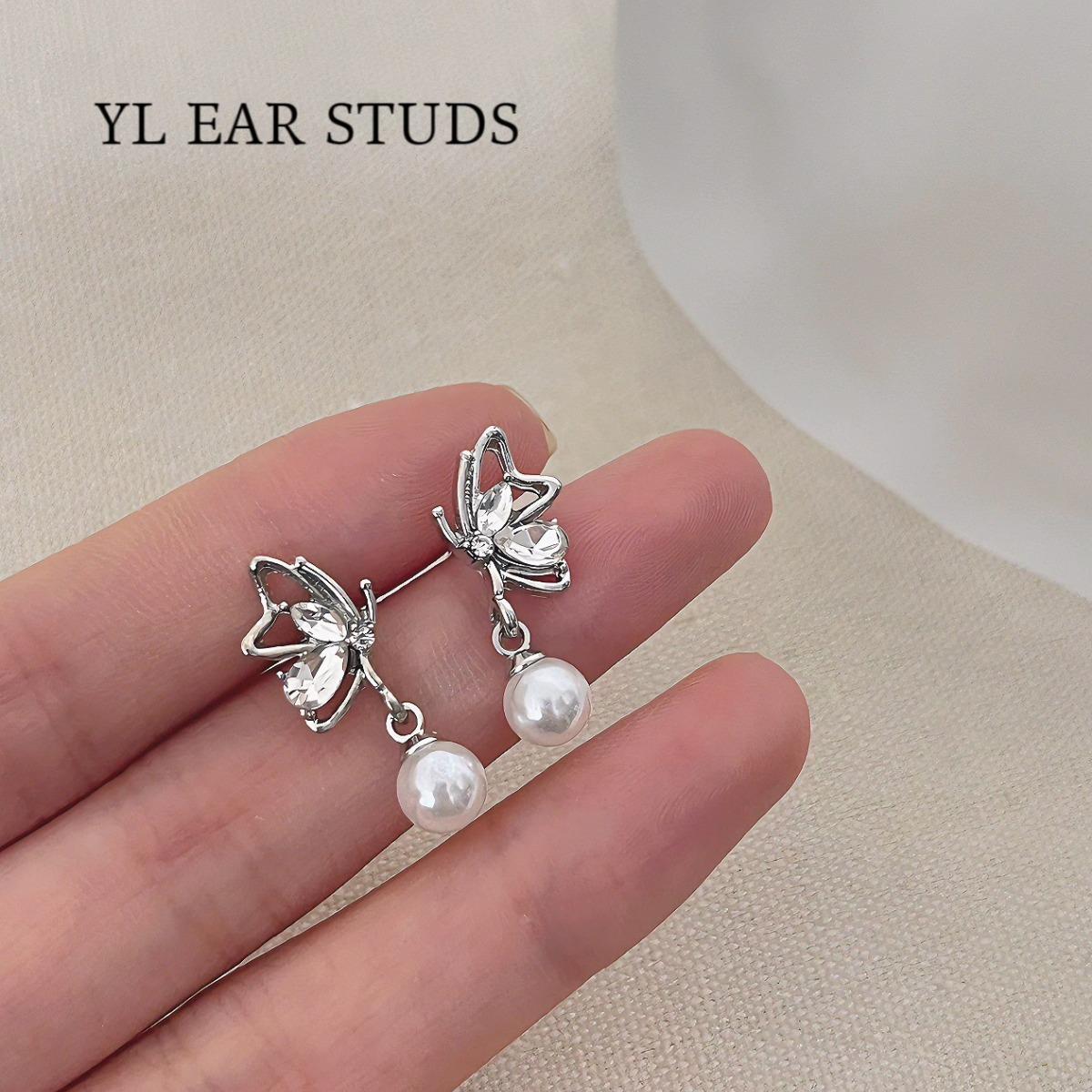 Pendientes de mariposa con diamantes de estilo frío y dulce, con diseño de nicho femenino, colgantes de perlas, exquisitos pendientes de moda