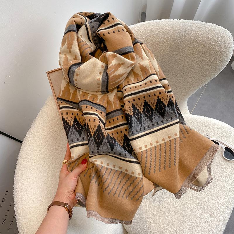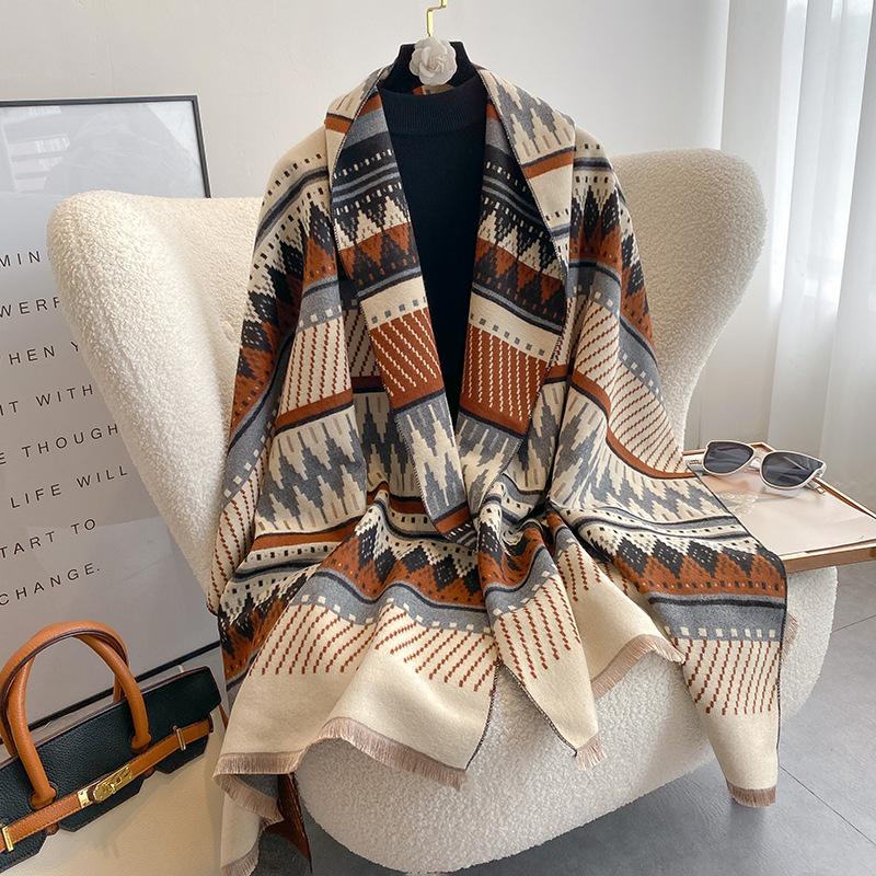 Bufanda de cachemira de doble cara de moda bohemia para mujer 2023 nuevo otoño e invierno engrosada moda cálido aire acondicionado chal
